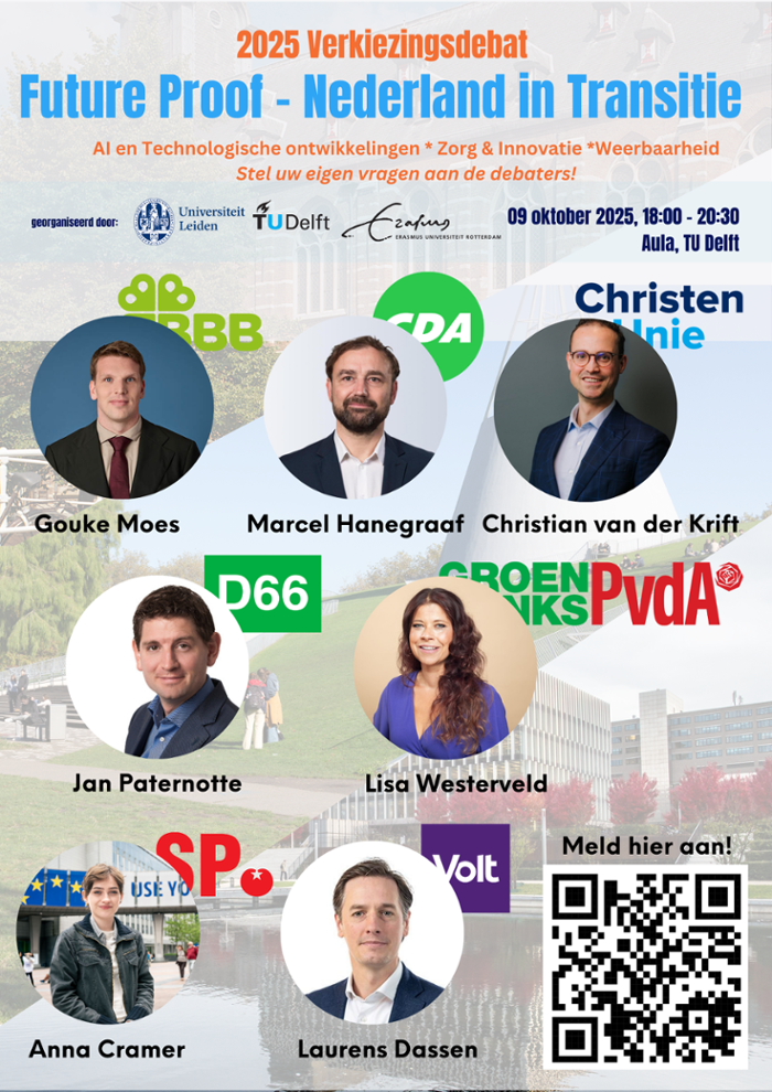 In aanloop naar de verkiezingen organiseren Universiteit Leiden, TU Delft en Erasmus Universiteit Rotterdam op 9 oktober een verkiezingsdebat.
