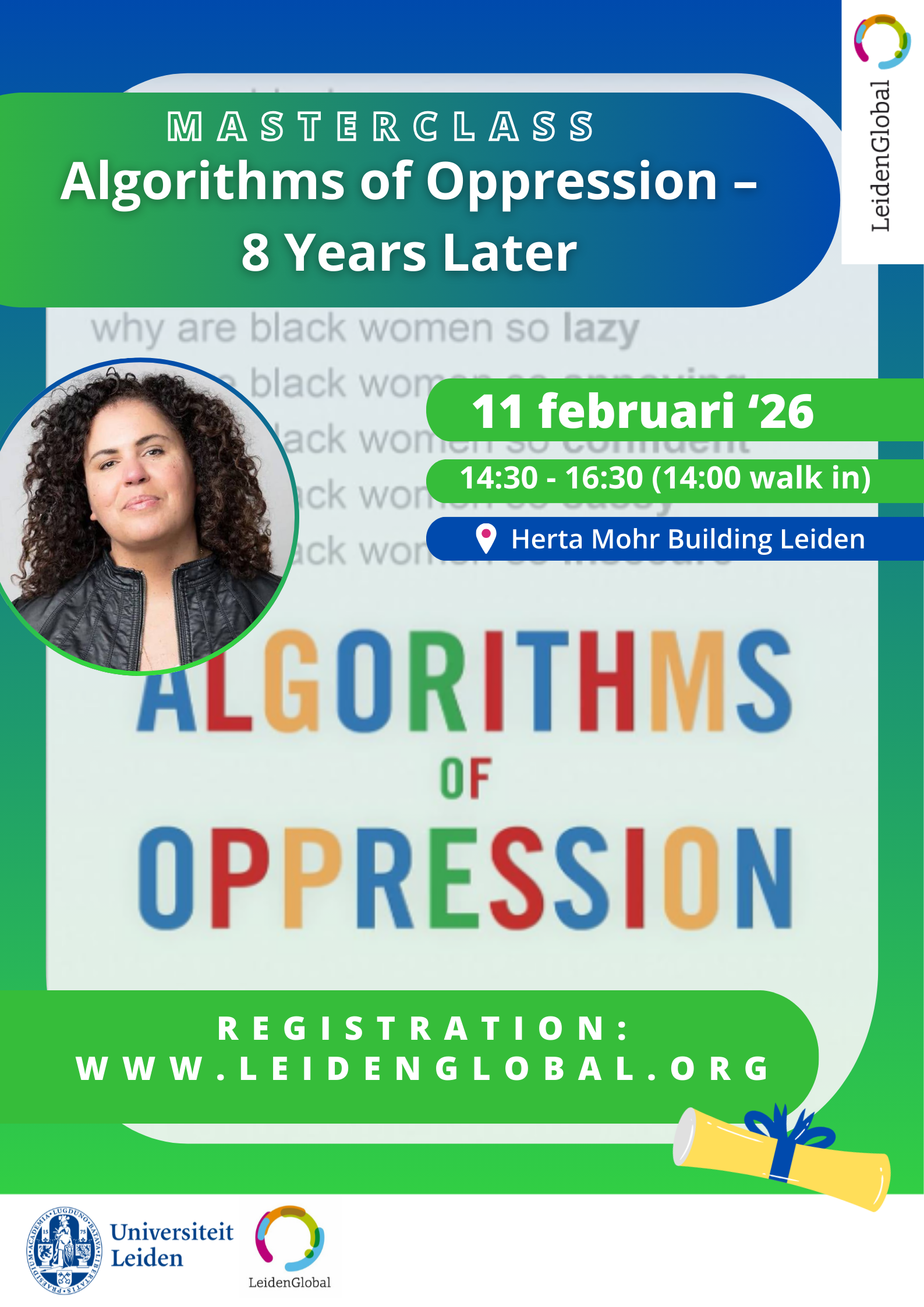 Tijdens haar Dies Natalis (op 9 februari) zal de Universiteit Leiden Safiya Umoja Noble een eredoctoraat toekennen als erkenning voor haar uitmuntende bijdragen aan de wetenschap, het onderwijs en de samenleving. Tijdens haar bezoek aan Leiden zal Noble in gesprek gaan met Leidse wetenschappers en inzichten uit haar onderzoek delen tijdens een speciale masterclass voor promovendi en (onderzoeks)masterstudenten, georganiseerd door LeidenGlobal en Culturele Antropologie & Ontwikkelingssociologie aan de Universiteit Leiden (CAOS).