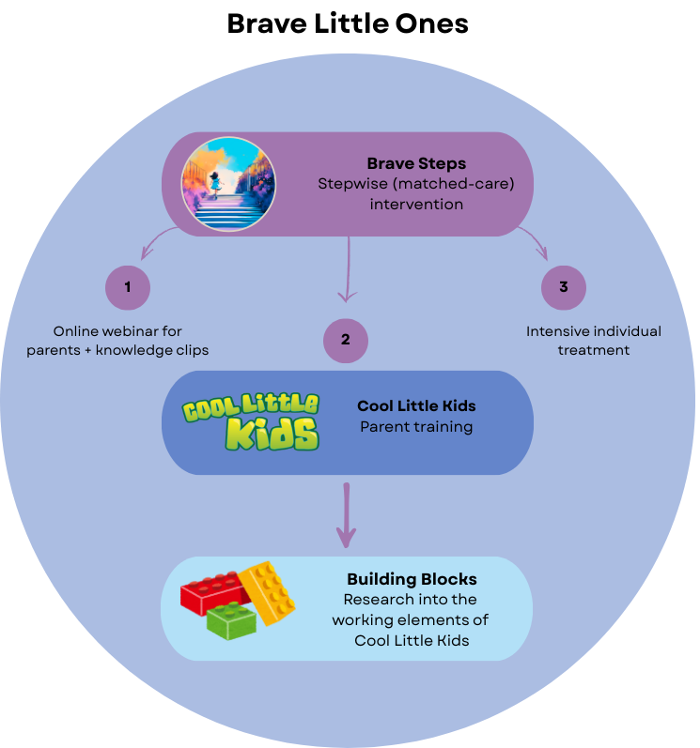 Within Brave Little Ones, we work on several projects to support young children who are prone to anxiety or shyness. We focus on early identification of anxious behavior, as well as on supporting parents in how to respond to and manage this behavior.