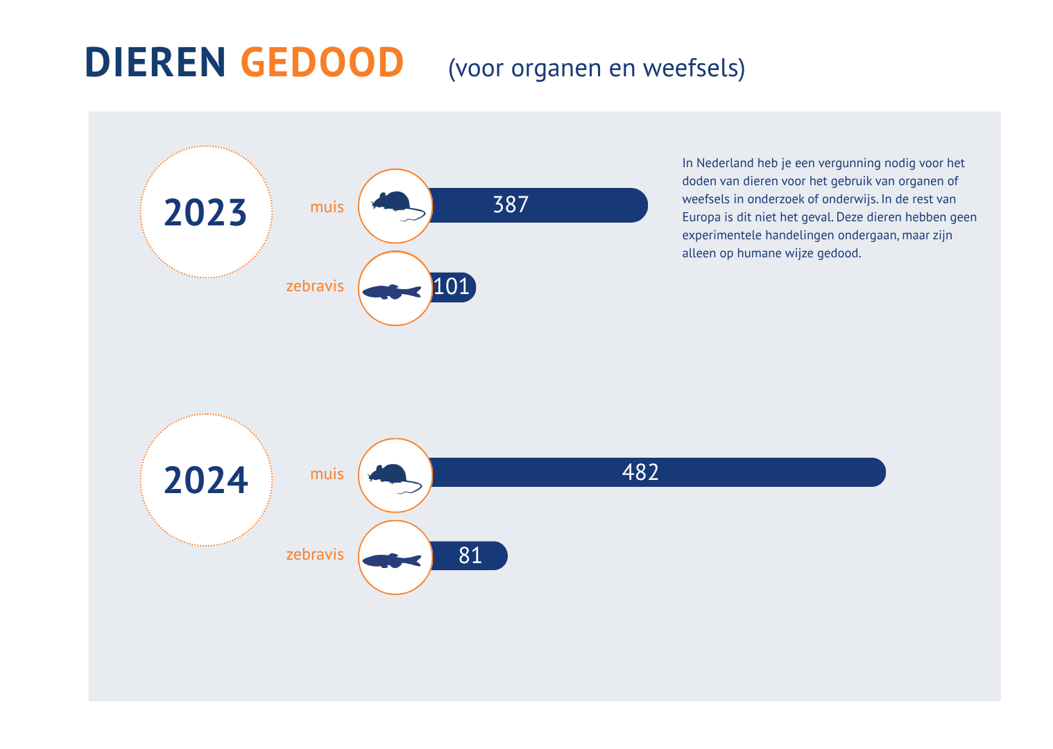 Dieren die zijn gedood voor het gebruik van organen of weefsels in onderzoek of onderwijs. Deze dieren hebben geen experimentele handelingen ondergaan, maar zijn alleen op humane wijze gedood. -