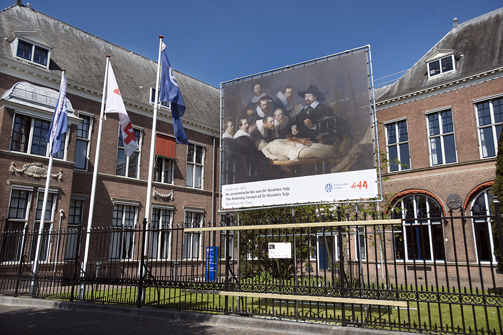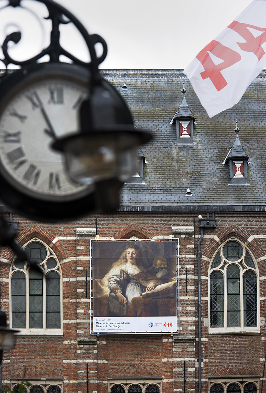 Zeven doeken op zeven gebouwen vertellen met elkaar het verhaal van Rembrandt en de Universiteit Leiden. Van zelfportretten tot historiestuk: ieder werk belicht de band tussen de Hollandse meesterschilder en de universiteit van zijn geboortestad.