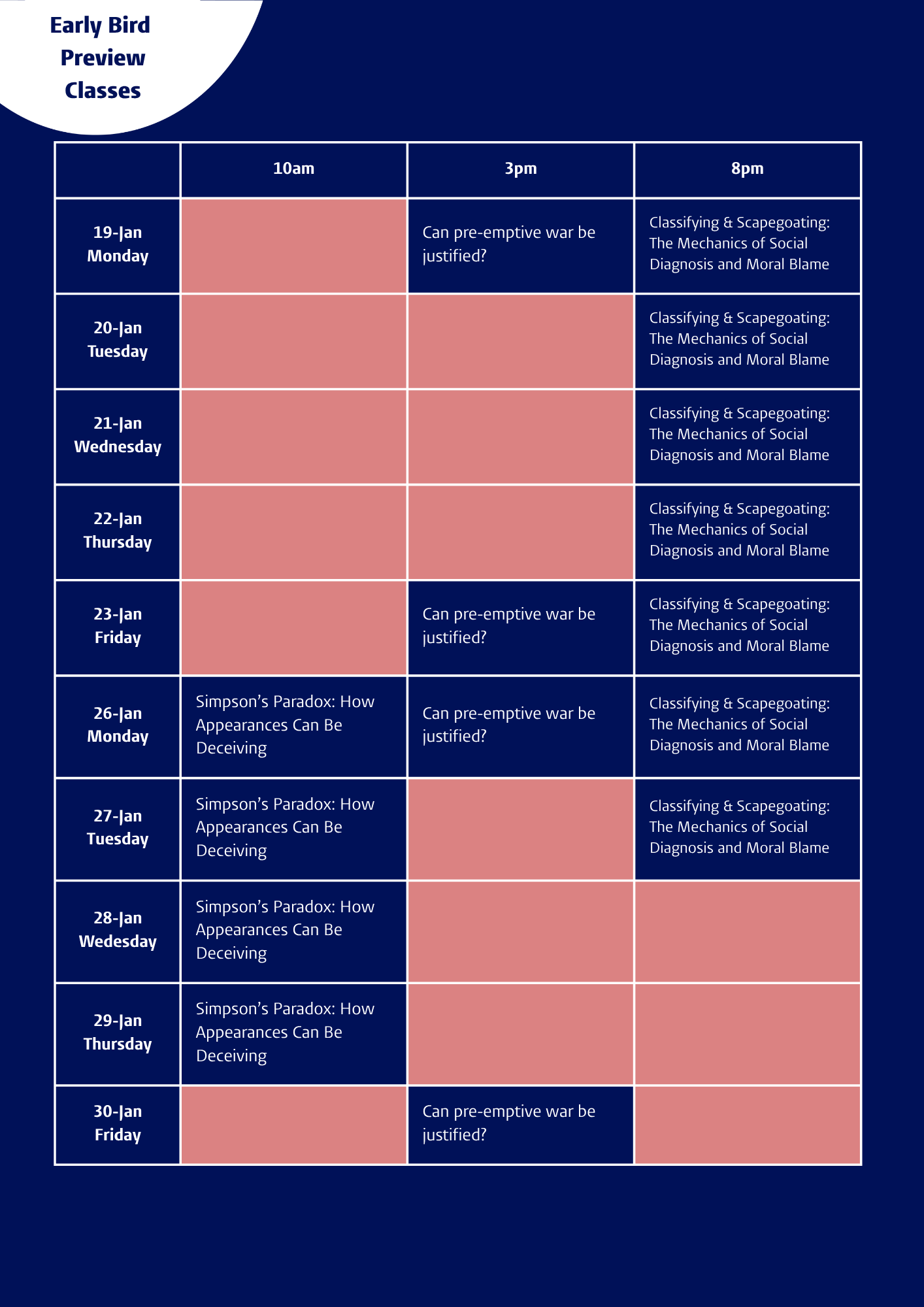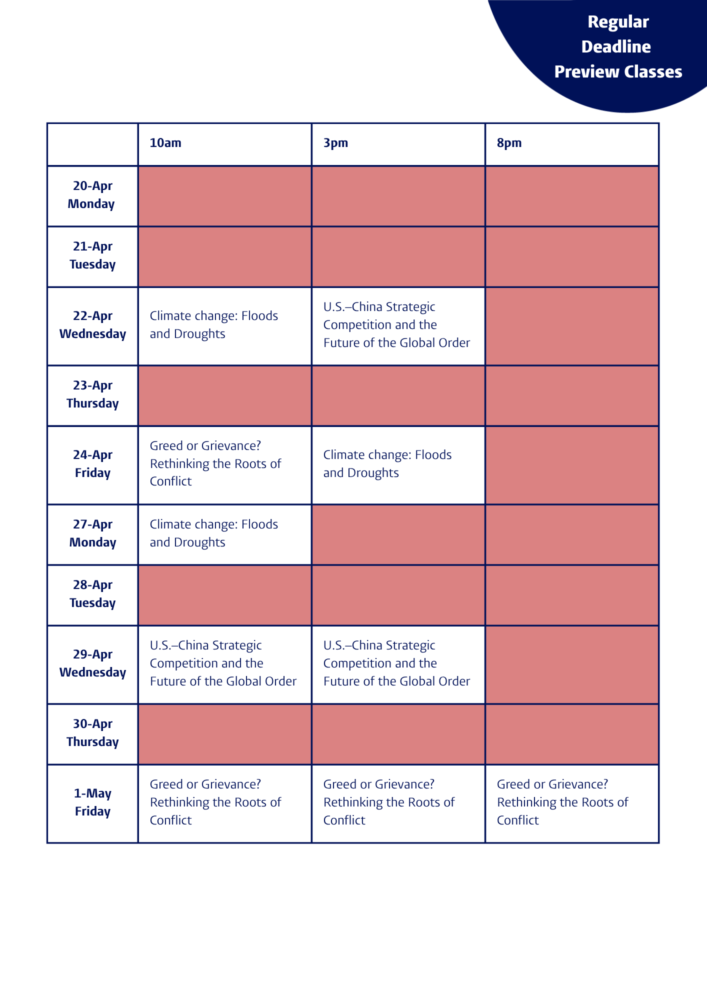 Regular Deadline Preview Classes -