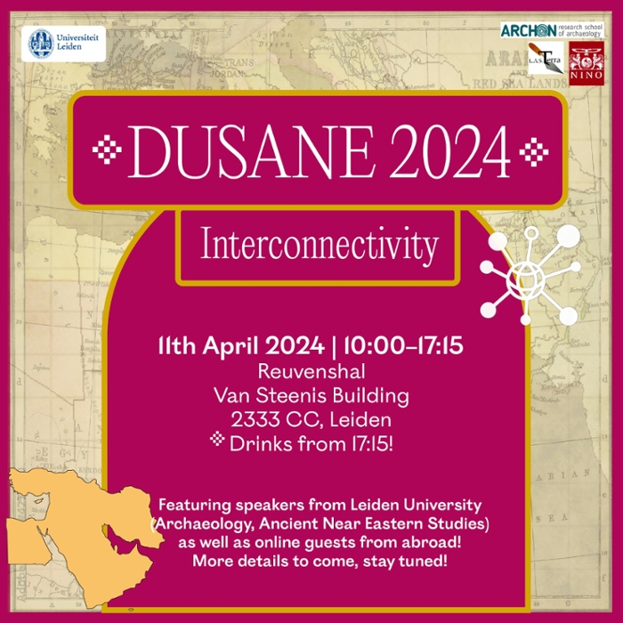 Introducing the annual DUSANE symposium, organized by L.A.S. Terra's ancient Near Eastern archaeology subgroup Nabu Na'id and Pleyte - a project in the field of archaeology, focused on the lively and historically rich region of the Near East.