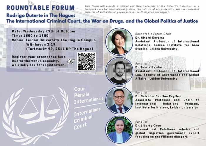 This panel will provide a critical and timely analysis of the Duterte’s detention as a landmark case for international justice, the politics of accountability, and the contested legacies of authoritarian governance in the Philippines and beyond.