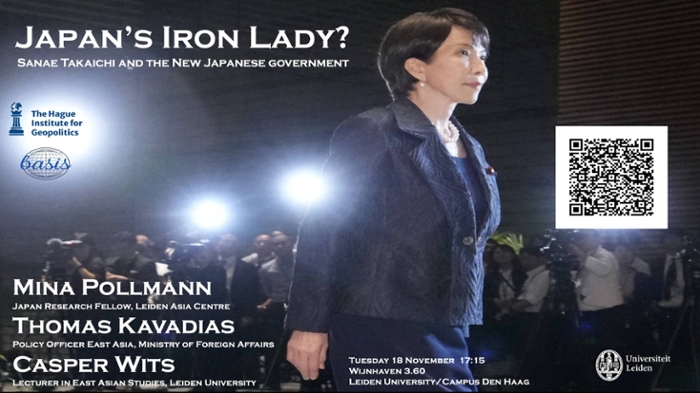 In this event Mina Pollmann (Japan Research Fellow, Leiden Asia Centre), Thomas Kavadias (Policy Officer East Asia, Ministry of Foreign Affairs) and Casper Wits (Lecturer in East Asian Studies, Leiden University) will have a wide-ranging discussion about the significance of Sanae Takaichi as Japan's first female prime minister, and what to expect from her new government. We will look at Takaichi's personal background and reputation as an (ultra)nationalist; the ramifications for Japan's defense policy; expectations for Japan's international relations with China, the US, and the EU; and much more.