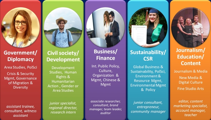 Our first alumni graduated in 2015 and are still early in their career, which means these career paths are by no means fixed. A diverse programme as International Studies results in very diverse career paths as well, so you might create your very own 6th, 7th or 8th path. Please let us know if you think we have overlooked something.
