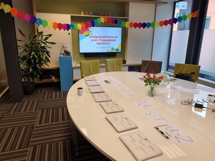 We had some experience with awarding ‘propedeuse’ diplomas in a more formal and en masse setting, but the informal atmosphere was clearly more attractive to our students, as we had many more student showing up for this event compared to two years ago (last year there was no event due to corona restrictions).