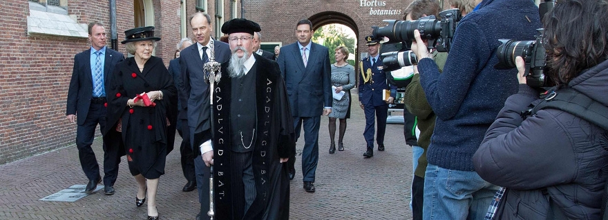 ‘The beadle is the University’s most visible official. It’s a position that breathes decorum, but above all it’s a position that calls for interest in people - nervous people, young and old, whether it’s a PhD candidate, a newly appointed professor, an Honorary Doctor or the Rector. Over the course of his career, Van Beelen has carried out all the centuries-old duties of the beadle - and he has done that magnificently. All universities have a beadle, but Leiden has had Willem van Beelen. On behalf of the whole University community, I would like to thank you, Willem, heartily for all that you have done for our University.’