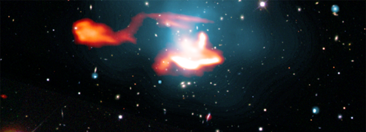 An unexpected phenomenon in a merger of a cluster of galaxies. An international team of astronomers led by Francesco de Gasperin has witnessed a gas tail of a galaxy, that slowly extinguished, but then lightened up again
