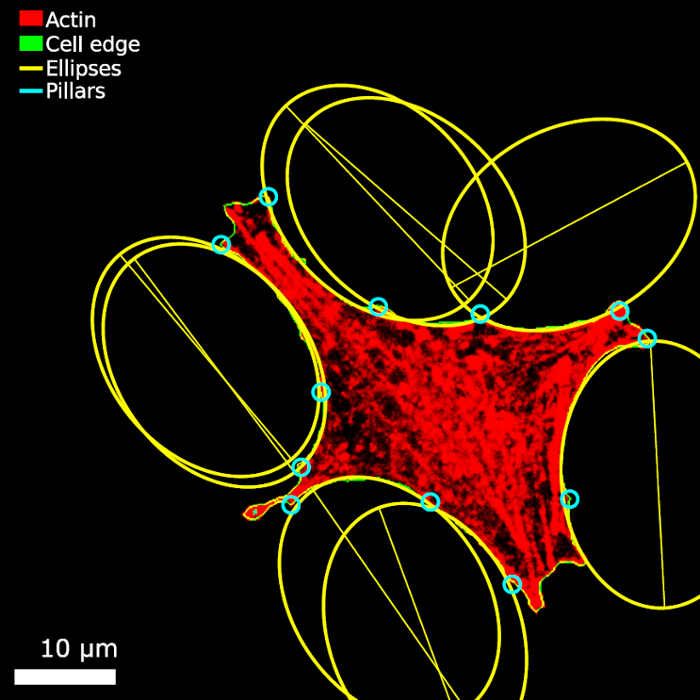 Suppose you trip on the sidewalk and get a small graze wound on your elbow. What do you do? Perhaps you should disinfect it, but for the rest: leave it alone. Before we get a chance to even think about it, millions of fibroblast cells have already started the healing process. Among other things, they close the small gaps in the skin by pulling tissue together. Cells perform this job, like all of their other jobs, by changing their shape. It enables them to exert force and feel their surroundings. People actually do the same thing: they change their posture while fixing a tire or search for the alarm clock in the dark. But how do cells translate their shape into applying a force in a specific direction? A collaboration of experimental and theoretical physicists from Leiden University have now found a clue to answer this question. The team, led by Luca Giomi and Thomas Schmidt, discovered that the shape of cells can be well approximated with segments of a particular ellipse.