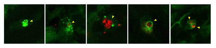 In the journal Autophagy the researchers focus on salmonella. Different variants of Salmonella enterica cause gastrointestinal infections (salmonellosis) or more serious systemic infections, like typhoid fever. With these pathogens, the researchers discovered an extra mechanism. They found that vesicles with salmonella are marked by a protein from the autophagy machinery, called Lc3. This happened shortly after the bacteria are engulfed by macrophages. ‘It is as if a ring of Lc3 forms around the bacteria’, says Meijer. ‘We think this helps to prevent the escape of the bacteria and stimulates fusion with digestive vesicles.’ The marking of infected vesicles is called LAP: Lc3-associated phagocytosis. The results identify LAP as a major host protective pathway in macrophage defence against Salmonella during systemic infection.