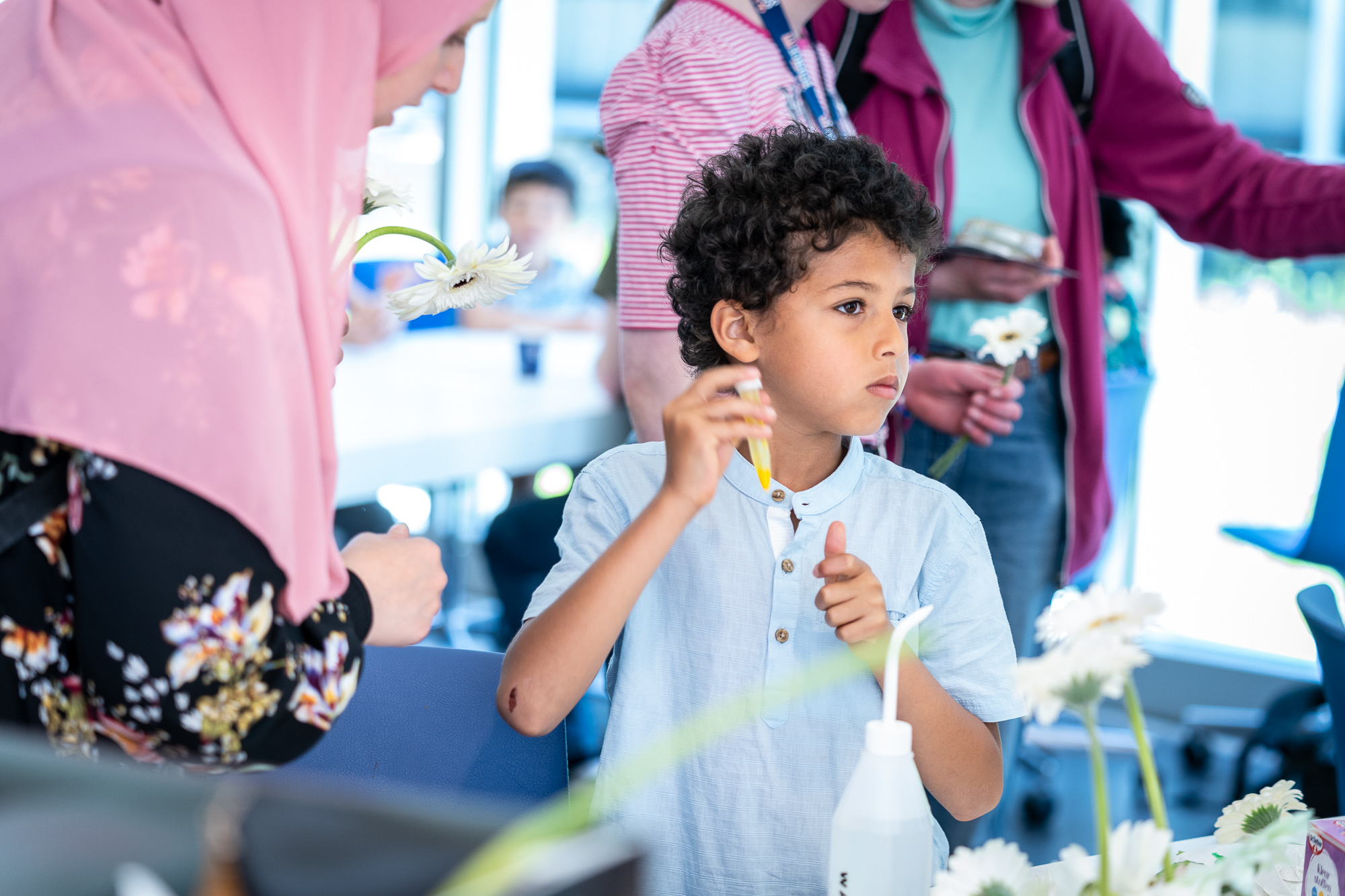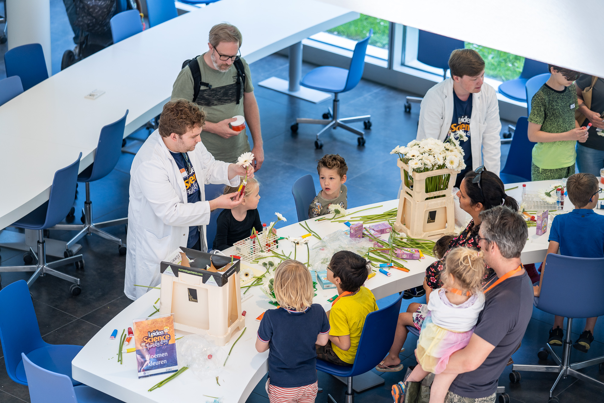 Next to that, children could colour flowers, isolate DNA from fruit, discover what you can do with light and learn how to draw with bacteria. There is no better way to understand science than to look at, feel and play with it yourself.