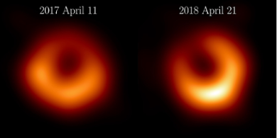A recent paper titeled “The persistent shadow of the supermassive black hole of M87” published in the journal Astronomy & Astrophysics presents new images from the 2018 data that reveal a familiar ring the same size as the one observed in 2017. This bright ring surrounds a deep central depression, “the shadow of the black hole,” as predicted by general relativity. Excitingly, the brightness peak of the ring has shifted by about 30º compared to the images from 2017, which is consistent with our theoretical understanding of variability from turbulent material around black holes.
