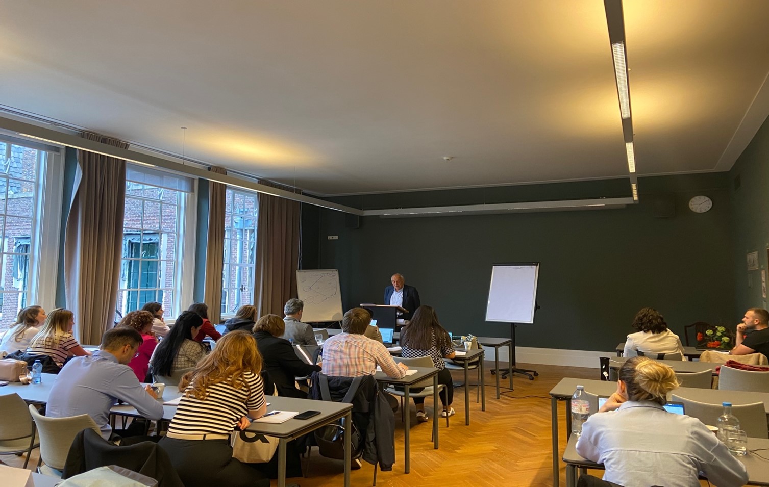 During the Management of Borders training, participants attended multiple lectures given by distinguished experts from Leiden Law School, other Dutch universities and experts from organisations in the field of migration management, asylum and human trafficking. The programme was enriched with a number of skills workshops and study visits to the European Union Agency for Criminal Justice Cooperation (Eurojust) in The Hague. On 25 March, participants visited Brussels and attended presentations at the European Parliament and the European Commission on the new Pact on Migration and Asylum and the EU enlargement policy in the region.