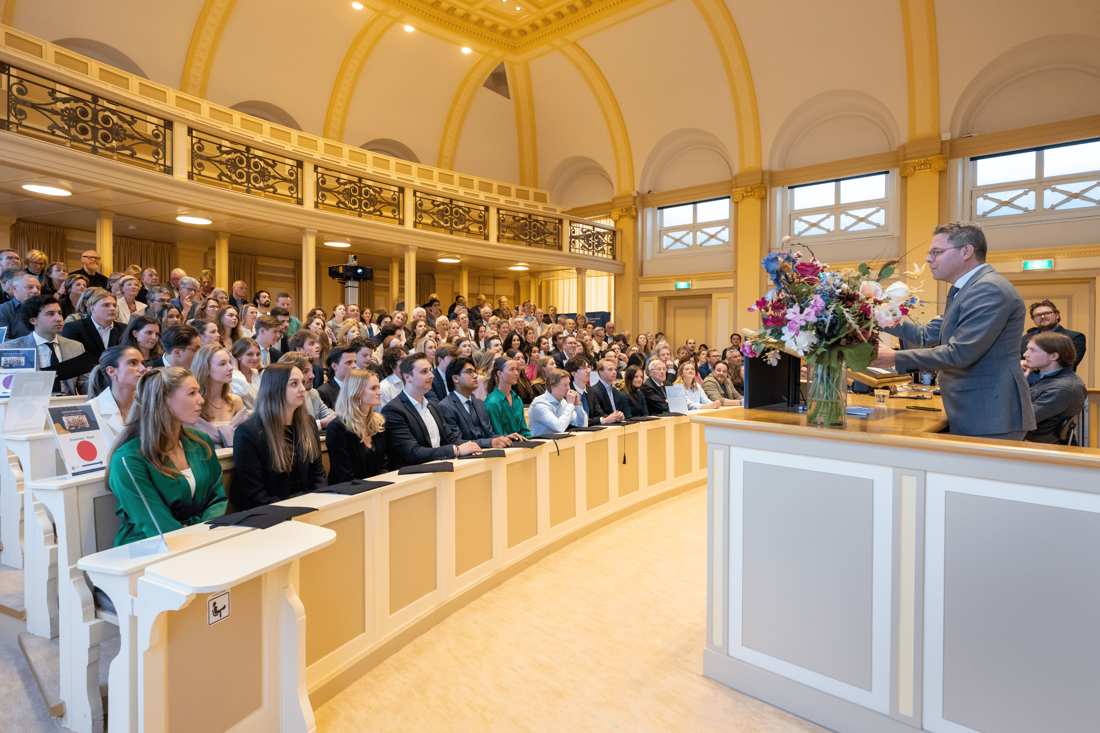 'Being awarded a bachelor's degree is a joyous moment. By completing your bachelor's degree, you have shown that you are well on your way to becoming the lawyers of the future. And that’s not only very good news for you personally, but certainly also for society. Because more than ever, society needs skilled, upstanding, and inspired legal experts who are at the heart of society and are equipped to tackle complex societal challenges. On behalf of the Faculty Board, I congratulate you all on reaching this milestone.’