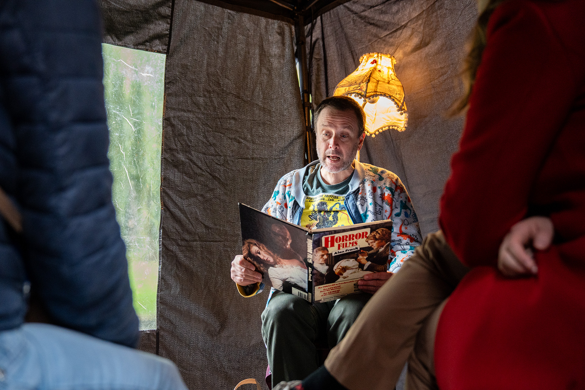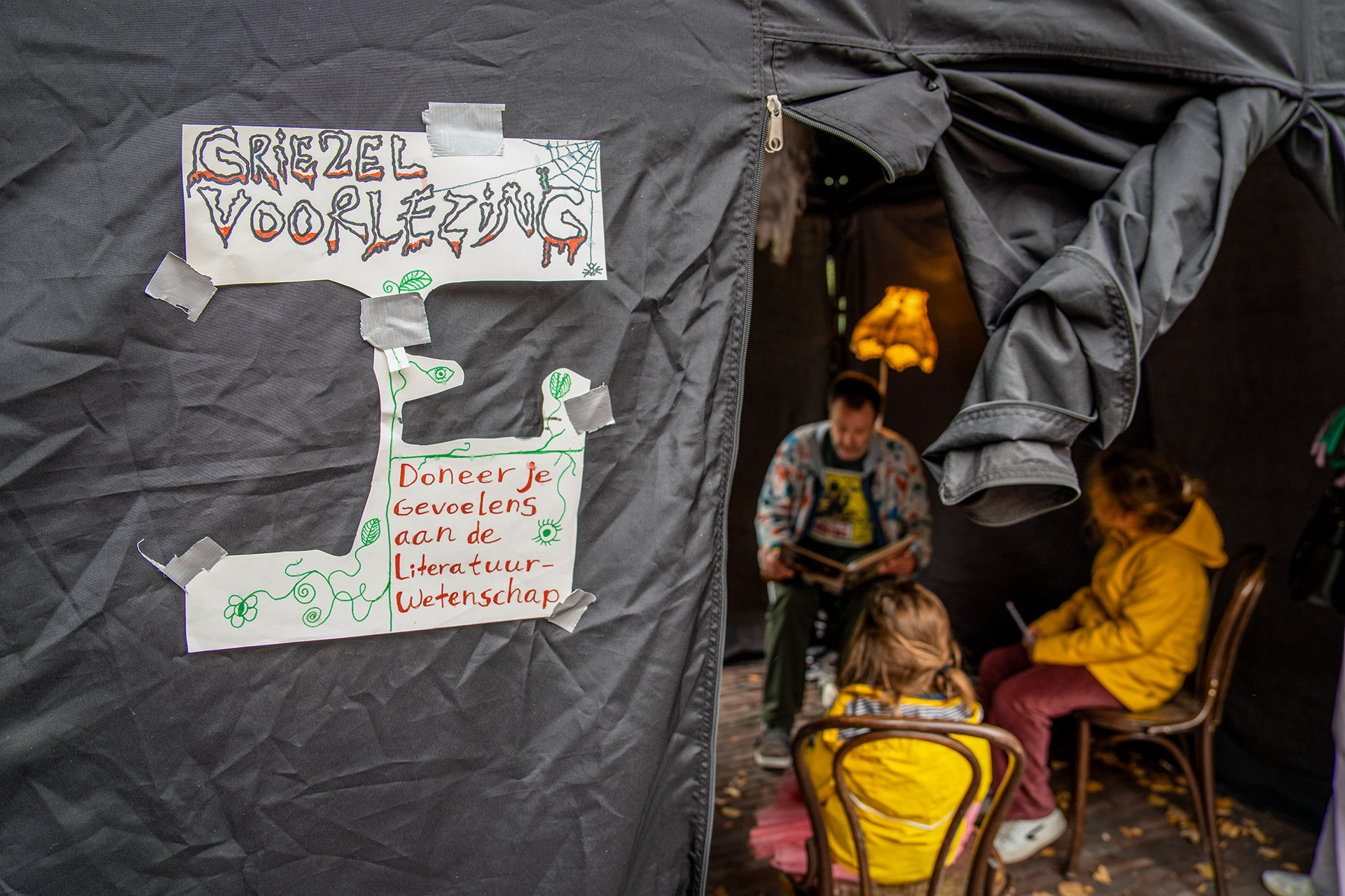 In a black tent bearing the words ‘Donate your feelings to literary science’, brains hang from the ceiling and Evert Jan van Leeuwen sits reading a horror story by lamplight about a girl who is mistreated her cruel uncle and a monster dwelling in the nearby lake. Cathelijn’s son listens enthralled (though he quickly runs off blow big bubbles afterwards). ‘He said he didn’t find it scary, but I’m not so sure’, Cathelijn says. ‘He loved how the researcher used different voices. The researcher explained that if ghost stories were truly terrifying, we wouldn’t listen to them at all.’