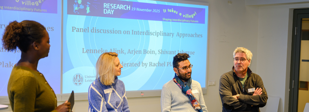 After the welcoming remarks by Prof. Bart Barendregt, also speaking on behalf of Prof. Koen Caminada, the programme moved to a panel discussion on interdisciplinary research. The session, moderated by Rachel Plak, brought together experienced practitioners from both FGGA and FSW: Lenneke Alink, Arjen Boin, and Shivant Jhagroe. From their diverse perspectives, they found much common ground in exploring the opportunities and challenges of working across disciplines. All the panellists shared the conviction that an interdisciplinary approach had enriched their research and brought unexpected insights.