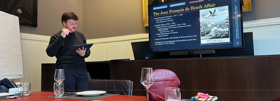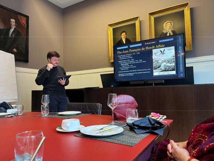 On Tuesday, Nov. 4, 2025, Mr. Seán Ivory (VU) presented part of his prize-winning research in a lunch talk entitled Let Sleeping Dogs Lie: The Politics of Emotion in the Pamphlets of the De Hondt Affair During the Small Brabant Revolution (1787).
