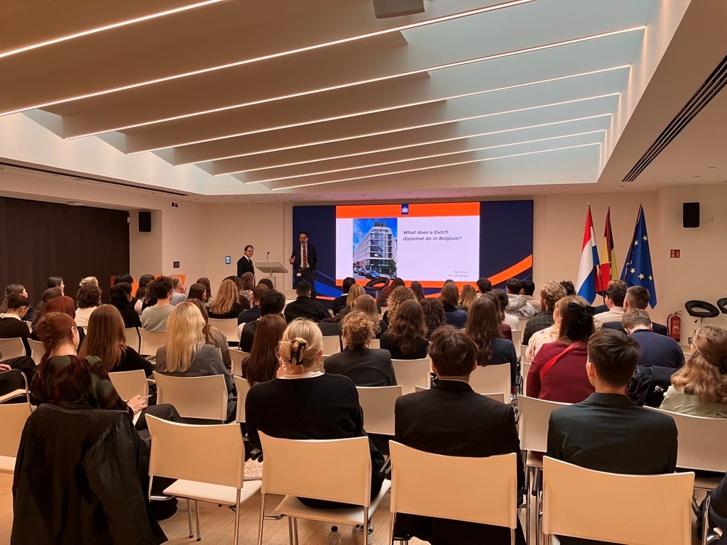 In the afternoon, we moved to the Permanent Representation of the Netherlands to the EU. Here, several speakers gave insightful presentations, including Tristan Schyns (Adviser Dutch Presence in Brussels), Kaja Flieder (Accredited Parliamentary Assistant at the European Parliament), and Casper de Boer (Policy Officer/ Country Team Leader, DG JUST European Commission). The special guest was Max Valstar, Deputy Head of Mission at the Embassy of the Netherlands in Belgium.