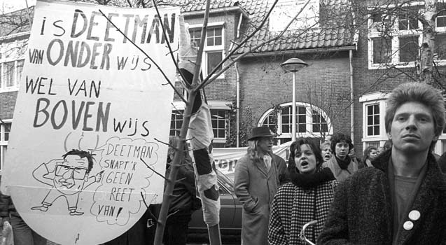 In 1969 Rohde wasn’t present at the occupation of the Academy Building, but in 1985 he was. Intense deliberations in the Zweetkamertje. Photo: Fred Rohde. -