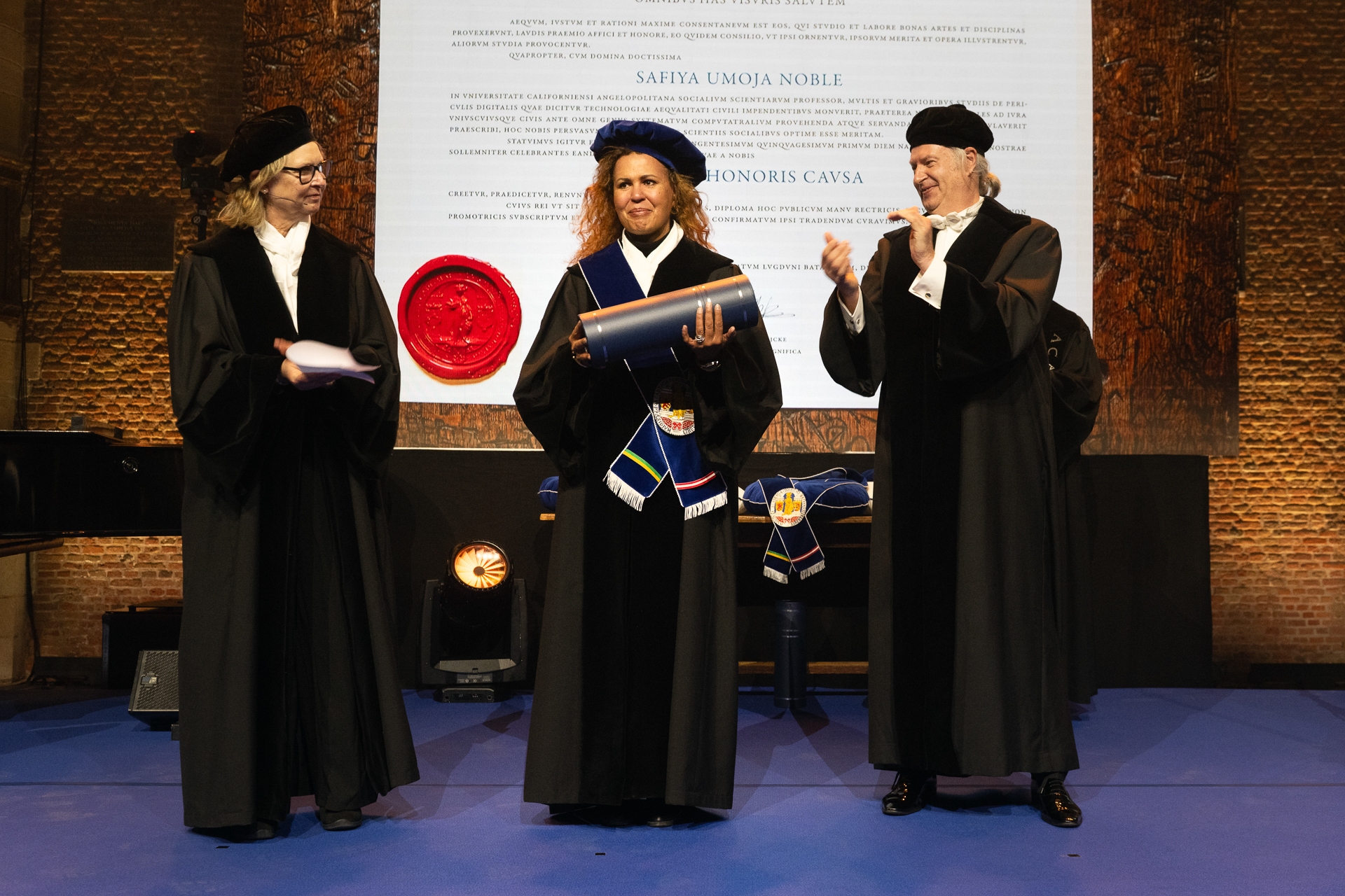• Safiya Umoja Noble is awarded an honorary doctorate by Marja Spierenburg, Professor of Anthropology of Sustainability and Livelihood. -