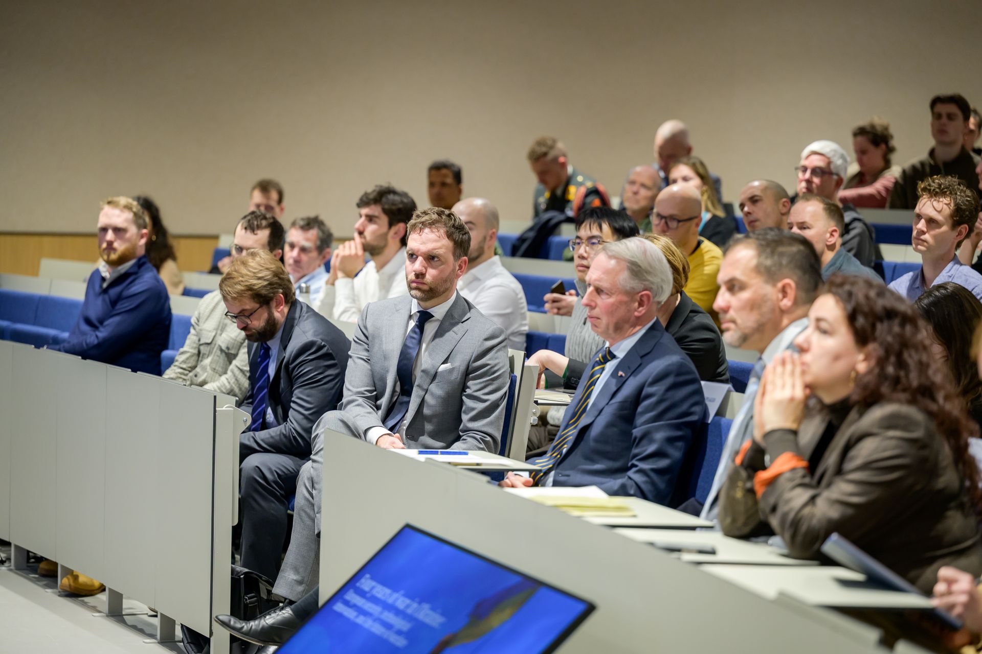 ‘The war no longer makes the headlines every day in Europe,’ the Ukrainian ambassador Andriy Kostin noted with concern. In a powerful speech in the large lecture hall at Spui Campus, he argued, ‘Ukraine is defending the rest of Europe against Russia. Investing now means saving many lives and resources in the future. Putin will only make concessions if our collective strength is greater.’