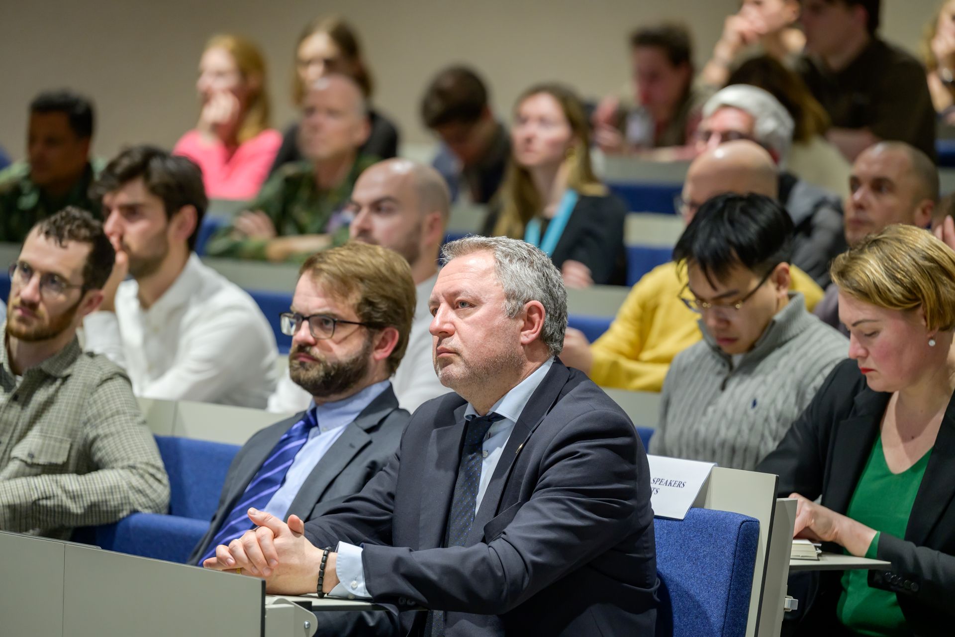 The room was full, with a mix of students, researchers, military personnel and others. The audience could ask questions at the end.