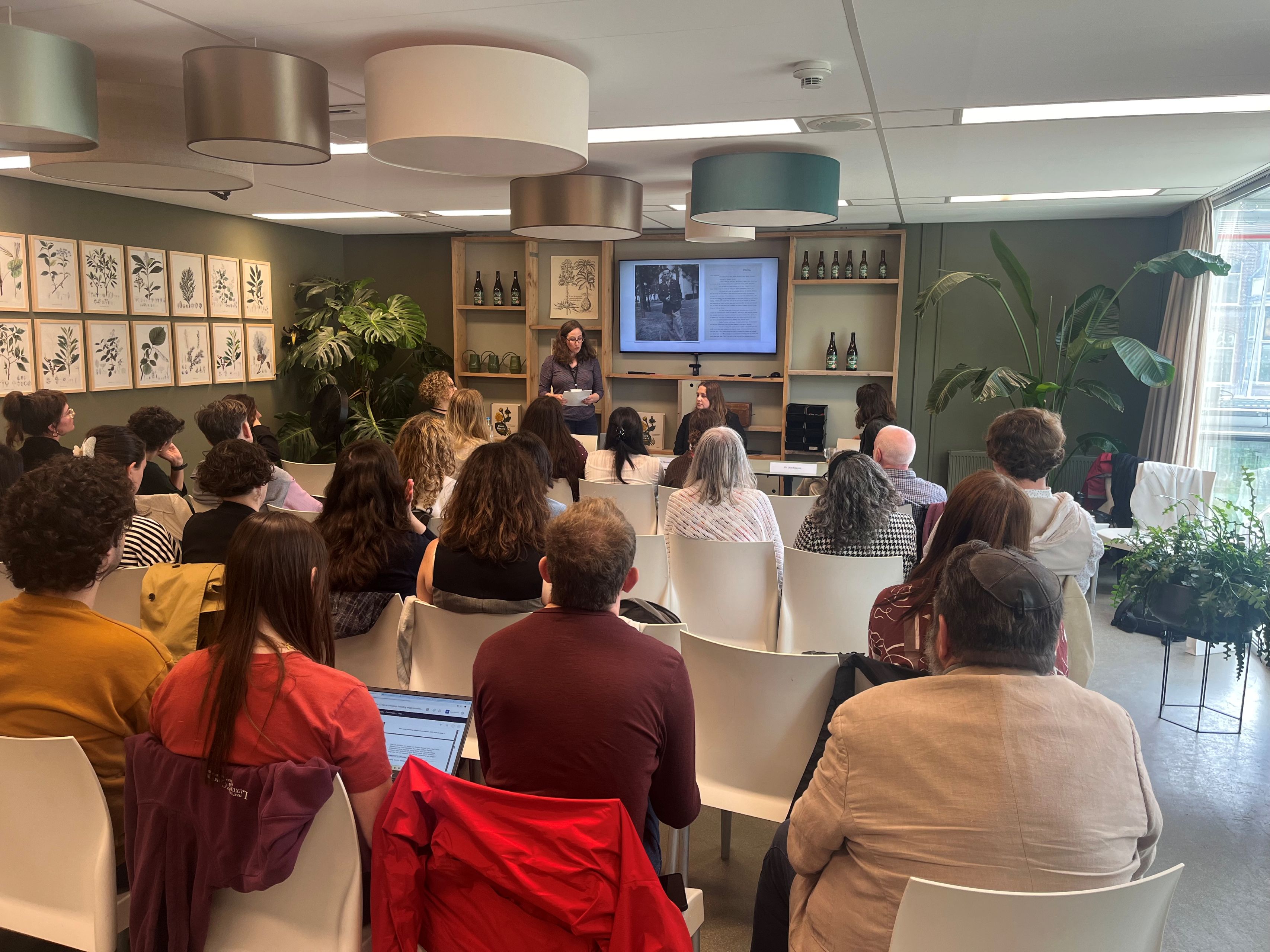 More than fifty people joined the keynote address delivered by Professor Elisheva Baumgarten, Dean of the Humanities at The Hebrew University in Jerusalem. Entitled 'The Kindness of Others: Jews, Christians and Early Childhood Care in Medieval Europe', this lecture surveyed Baumgarten’s numerous publications while offering an original argument about the way historians use care in the past and demonstrate care in the complex present. A reception followed the keynote and students from the History M.A. class 'New Approaches to the Holocaust' and the Religious Studies M.A. class 'Religion on the Move' enjoyed an opportunity to discuss the work of the conference over bitterballen and beers.