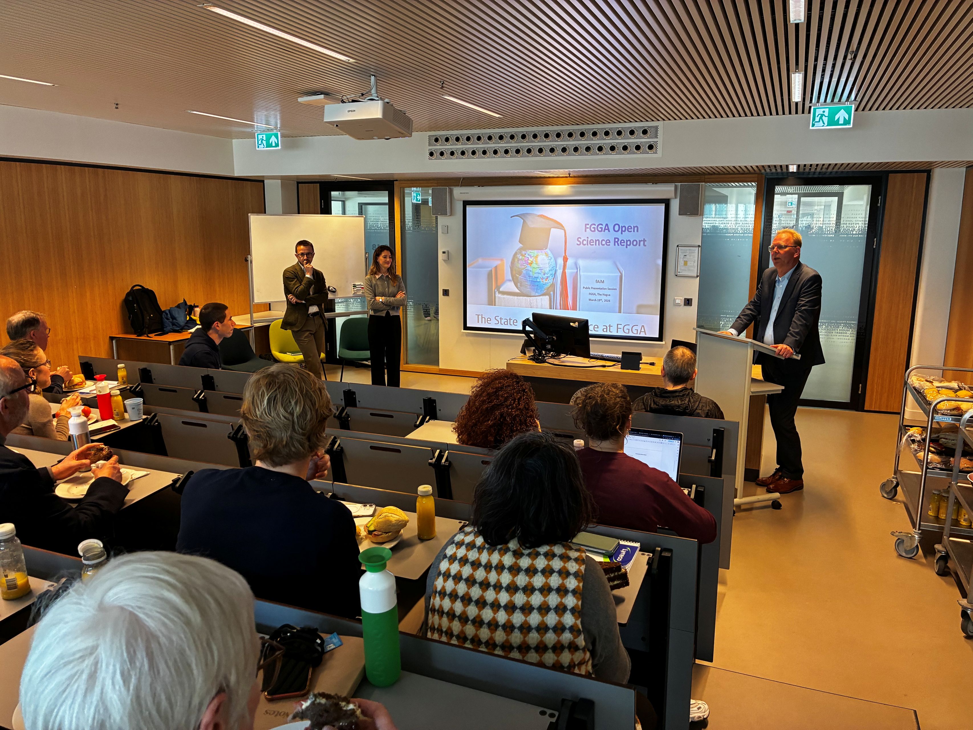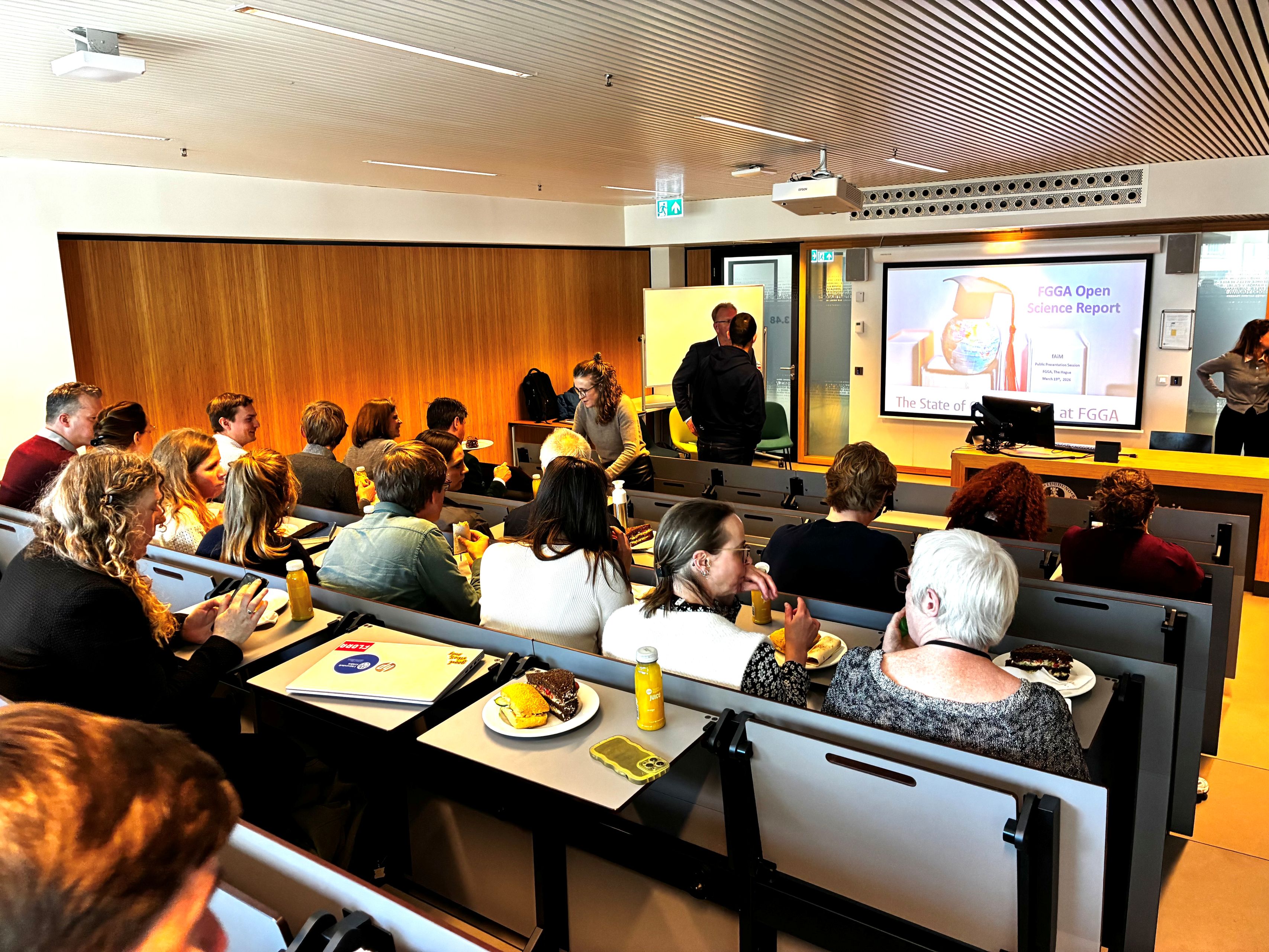 Dean Koen Caminada opened the session with a clear invitation: do not view the report as an end point, but as the start of a conversation. The presentation by researchers and FAiM members Andrei Poama and Cristina del Real demonstrated that Open Science within FGGA is a broad and sometimes divergent concept. More familiar practices, such as publishing in open access and broader science communication, are already relatively well established. At the same time, colleagues see promising opportunities for further development in areas such as Citizen Science and Open Education. The report also shows that these ambitions differ per institute and per practice.