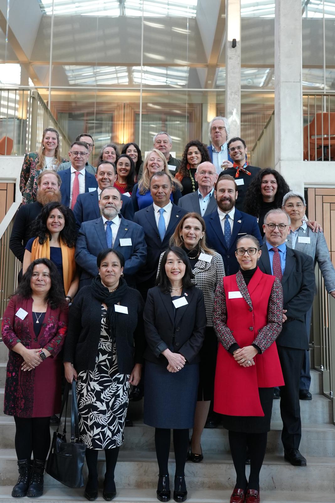 Group portrait: all ambassadors with staff members, including the lecturers who organised the anniversary celebrations: Nanne Timmer, Paz González, and Soledad Valdivia.