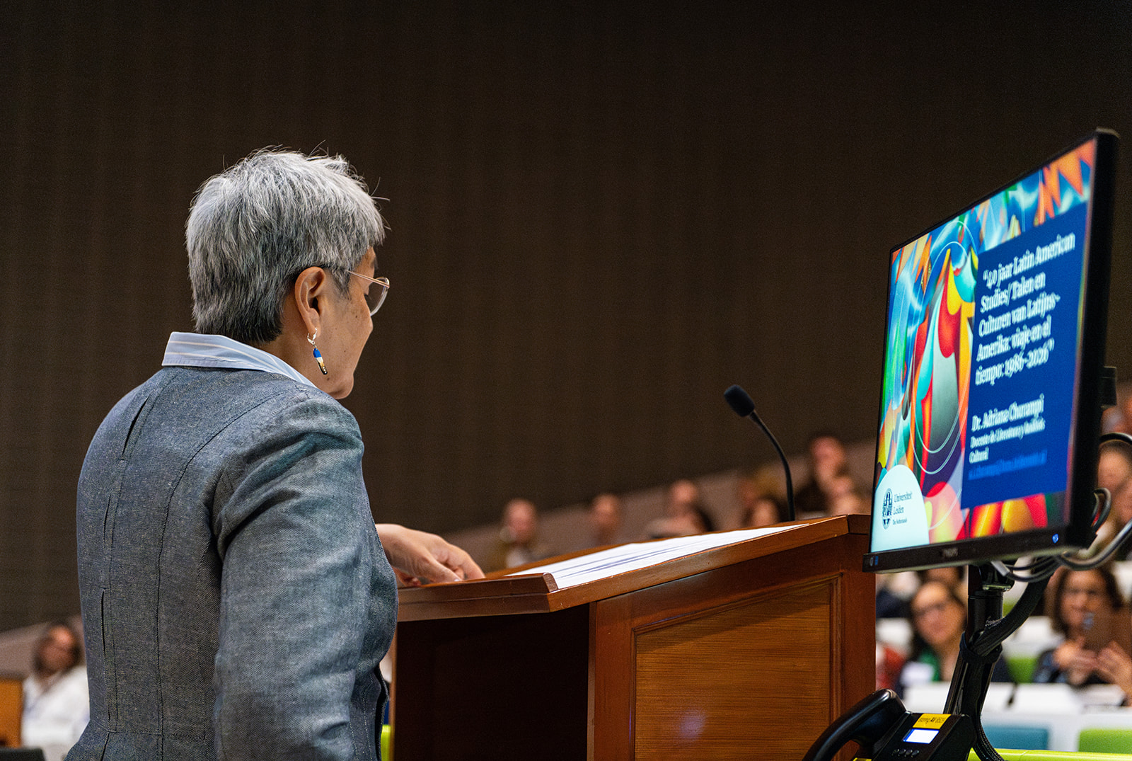 The 270 attendees who rose to their feet in applause clearly shared her conclusions. The hundreds of alumni present from Talen en Culturen van Latijns-Amerika (TCLA), or Latin American Studies (LAS) as the programme is now called, know better than anyone the potential and creativity of the Global South, and of Latin America in particular. In addition to alumni, students, and staff, ambassadors from Bolivia, Brazil, Chile, Costa Rica, Cuba, Colombia, Ecuador, El Salvador, Guatemala, Mexico, Panama, Peru, the Dominican Republic, Spain, Uruguay, and Venezuela were also in attendance.