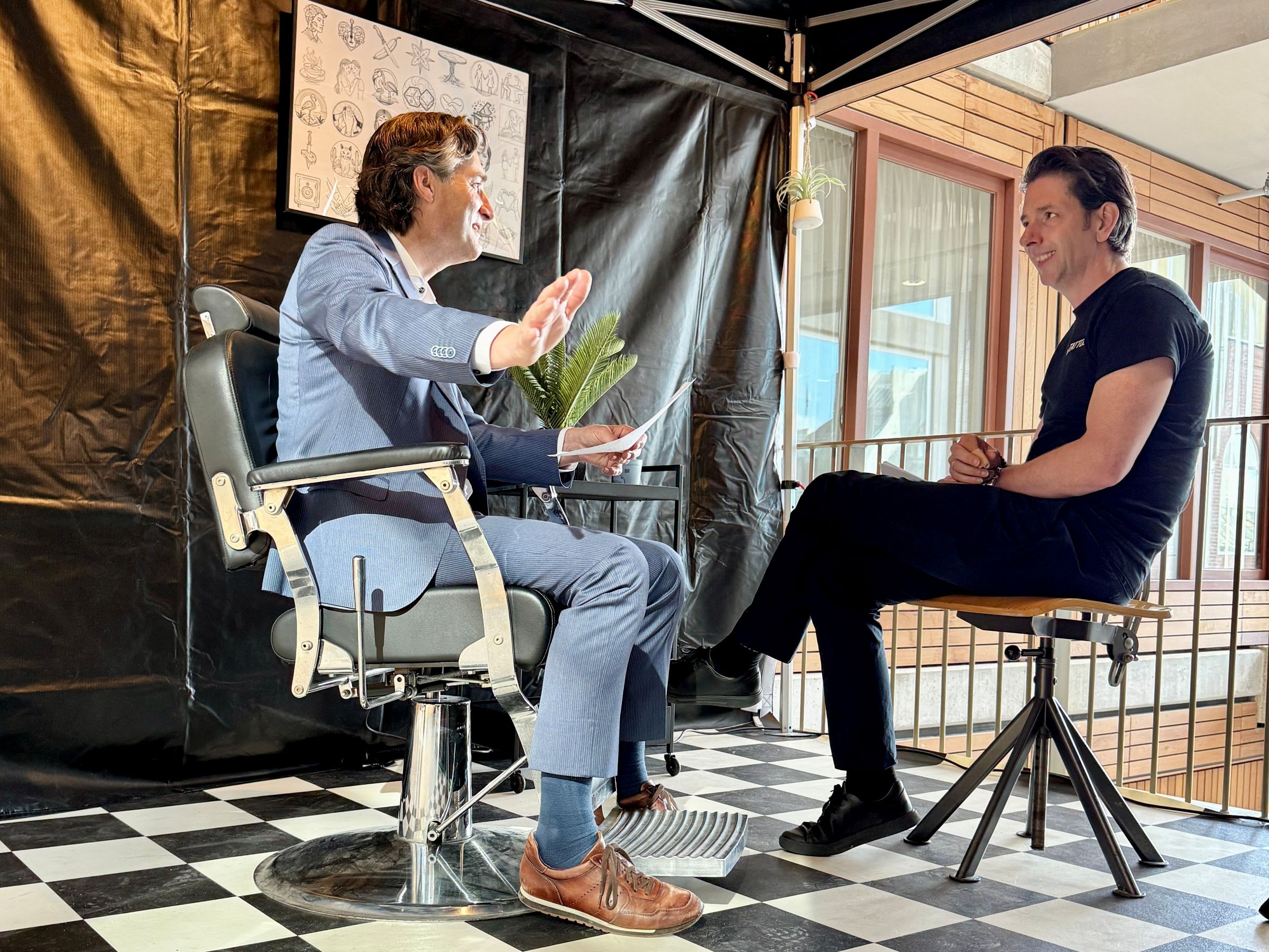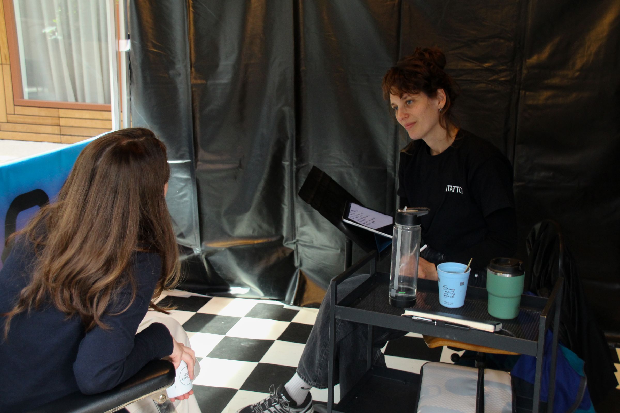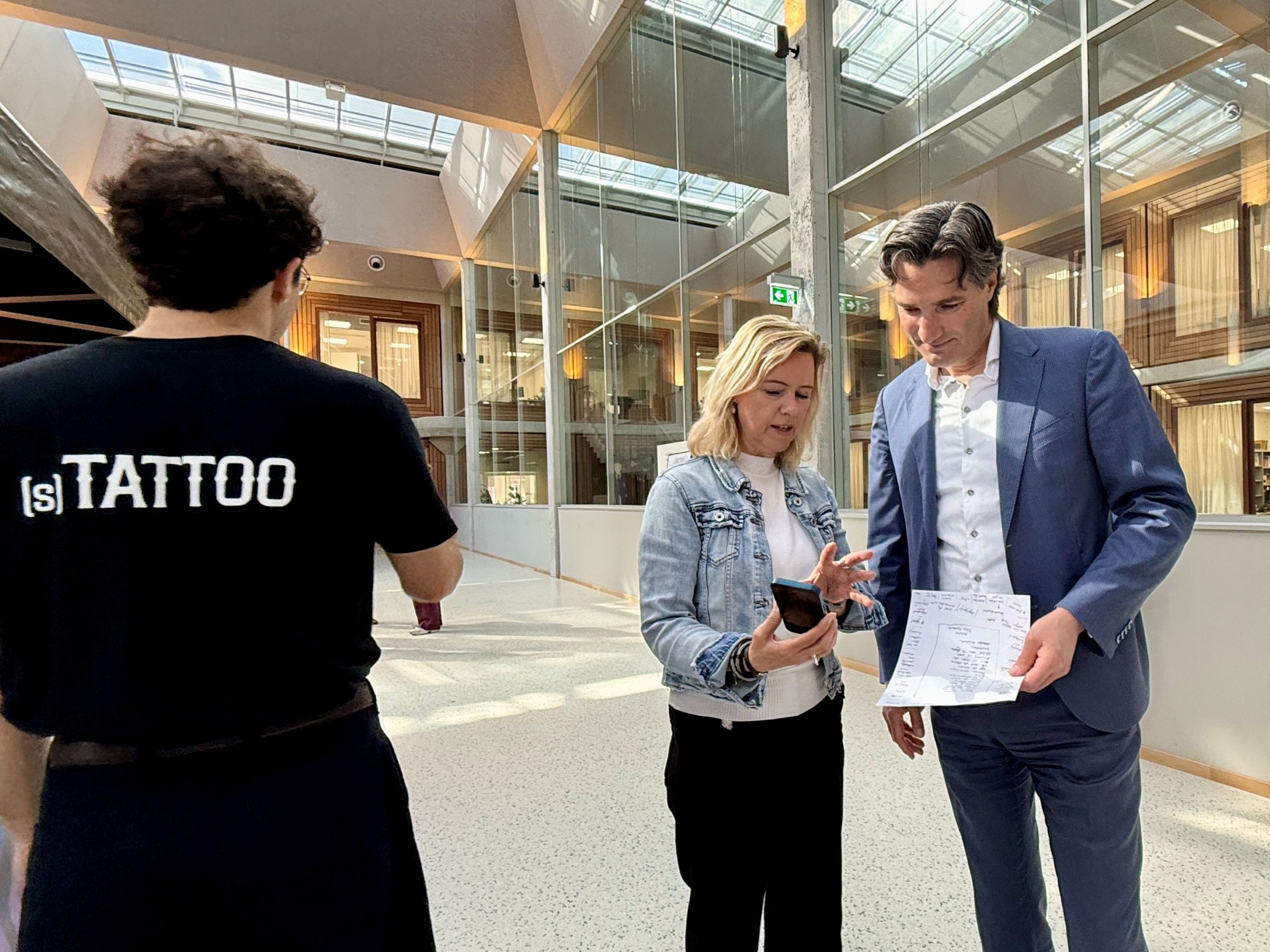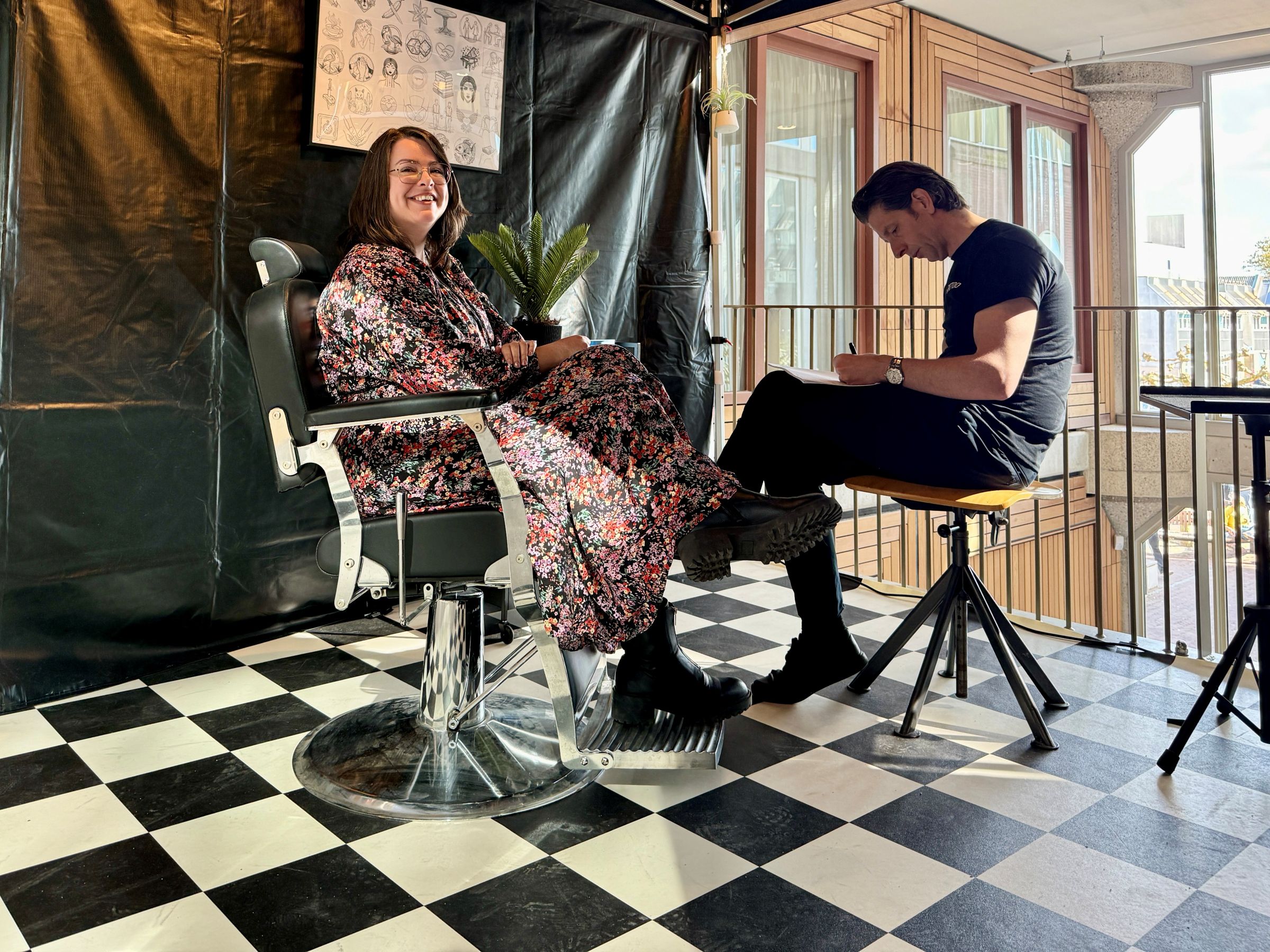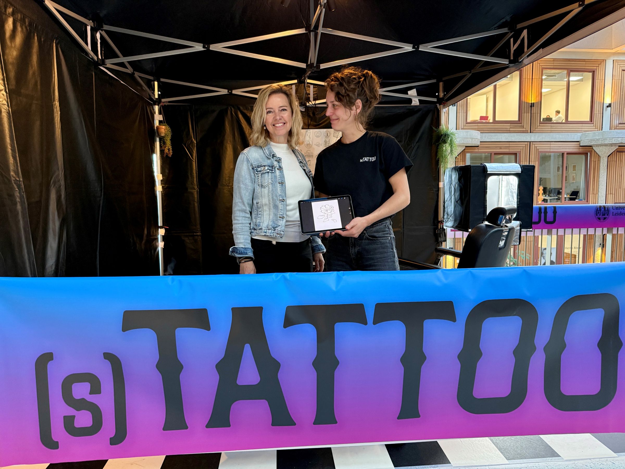 Vice-chair of the Executive Board, Timo Kos, and Director of Operations Saskia Goedhard were the first guests of (s)Tattoo that morning. ‘I’ve had an idea for a tattoo in my head for two years now, but I just can’t seem to turn it into a design,’ said Goedhard. ‘I hope the artist here can help me turn the story of how I do my work into a design for a small tattoo.’