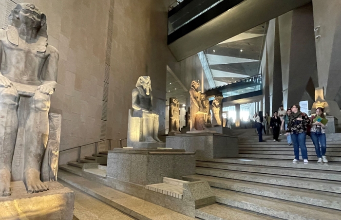 After our visit to the Egyptian Museum earlier in the week, we were excited to see the Grand Egyptian Museum (GEM). This stunning building took our breath away. We got a quick tour through the 12 massive galleries from a tour guide who might not have been an Egyptologist… but still gave an exciting introduction to the displays. We roamed around on our own admiring the visually pleasing displays, even if the label texts were sometimes brief. We headed back in time for a lecture at the Italian Archaeological Center by Ahmed Mansour and Fatma Keshk, who presented their findings on the printing of Egyptology in Arabic during 19th century Egypt. Fun fact, the first book printed is almost always a dictionary!