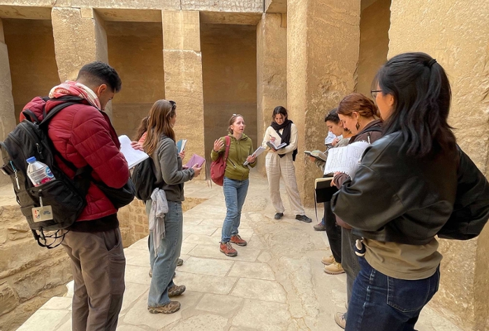 On Tuesday we went on an excursion again: Saqqara! There was so much to see in so little time, but we still managed to visit a lot of different places. We started out near the Step Pyramid of Djoser, where Marleen gave us an introduction to the site of Saqqara. Then we went into the pyramid. Luckily for us, the descent was much easier than when we went into the Bent Pyramid at Dahshur. Afterwards, we also visited the pyramid of Unas, where we saw the oldest Pyramid Texts. I remember spending many Sundays at home translating these texts, and it was interesting to see them in real life. We also visited the New Kingdom Tombs, including the Tomb of Maya, which had been rediscovered in an excavation in which the National Museum of Antiquities in Leiden also took part. After lunch—where some dogs decided to join us—we visited the tomb of Mereruka at the complex of Teti. Then it was finally time for my site presentation at the tomb of Ti. It was interesting to see this site in real life, after all my research on it. When we were done at the tomb of Ti, it was almost closing time, but we could not leave without a quick visit to the Serapeum, which was very impressive.