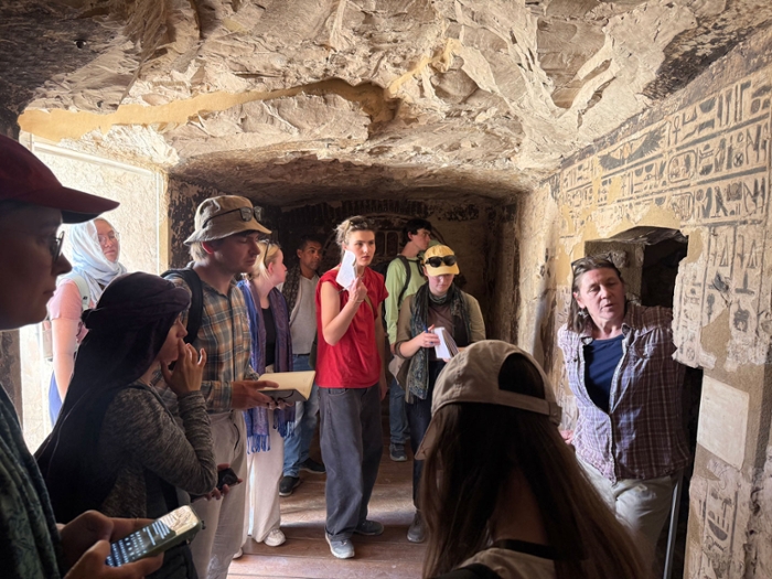 On Sunday, it was time to cook ourselves in the desert, while visiting the Theban tombs at Dra Abu el-Naga South. First, we went to TT16, where the team led by Dr. Suzanne Onstine is doing phenomenal work in conserving and recording the beautiful paintings inside the tomb. After visiting, one of the team members, Daniel Warne, was excited to show us how they do their epigraphic work. There was also a very cute cat named Arthur on the site, who totally stole the show.