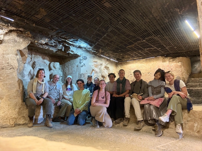 At 11:00, we left for Deir el-Medina, which some people in the group were very excited about. After a hike up the mountain on the site, we arrived at the stunning excavation house. There, Dr. Elisabeth Bettles explained more about the site. She first took us to TT216, which was the tomb of Neferhotep, a chief of the workmen. Dr. Stéphane Polis gave us more information about TT211, which had one of the most beautiful funerary reliefs we have ever seen. After the tour, we walked over to the Great Pit and the temple of Hathor.