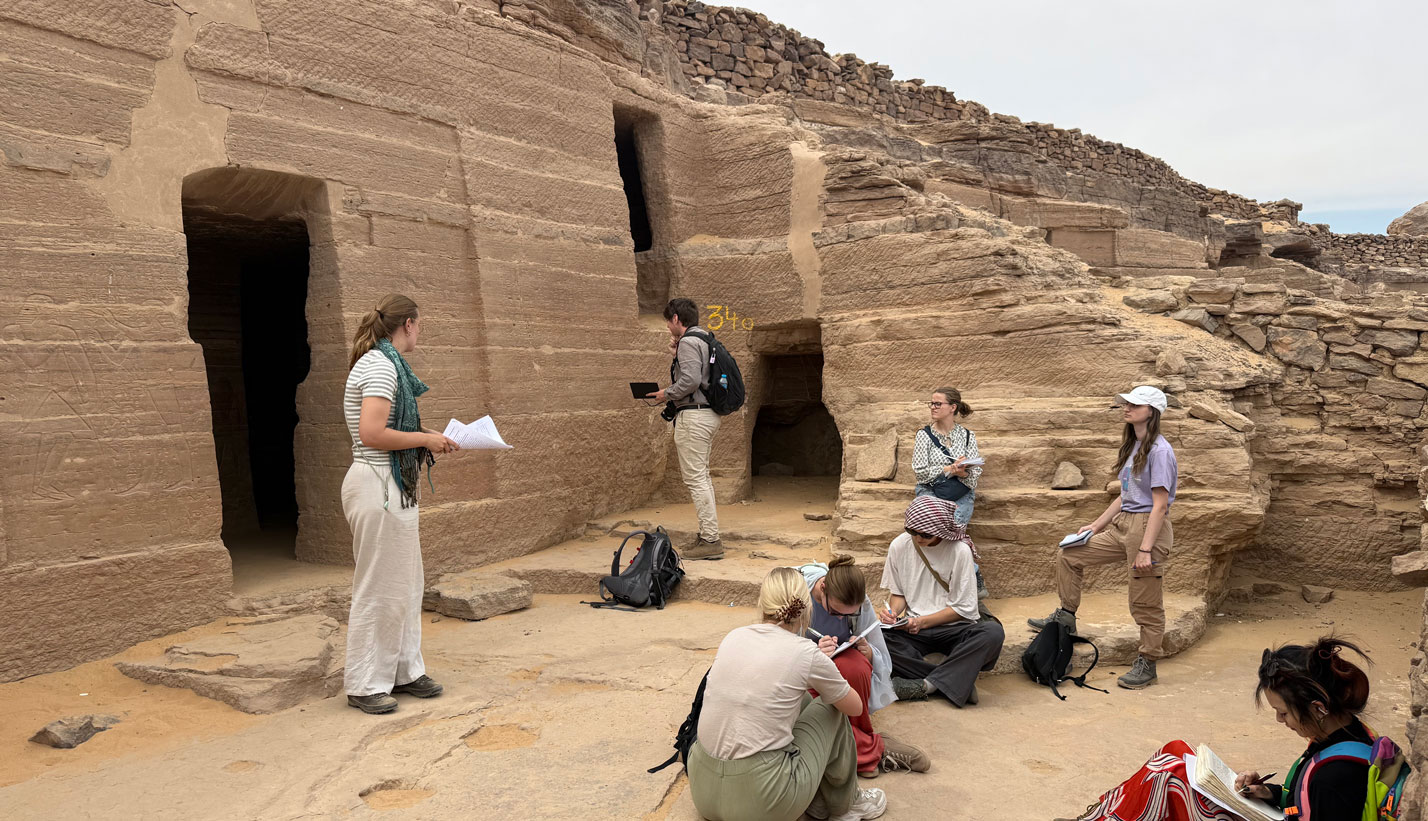 After witnessing the Giving-of-the-cheese-ceremony for the last time, we went to Qubbet el-Hawa, where Luna gave her site presentation on the tomb of Harkhuf. Harkhuf, a 6th Dynasty official, undertook four expeditions to Nubia, three of which are mentioned on his tomb. The letter from Pepi II was also there in its full glory. For many of us, the texts on the façade of the tomb were our first introduction to Old Egyptian, so it was a true full-circle moment. After Luna’s presentation, we got to explore the other tombs in the area, and even went to the shrine on top of the mountain. Fortunately, we did not encounter any trap doors or big, moving boulders. Some of us did end up in a breakdance battle somehow.
