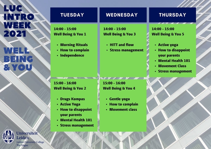 This Intro Week will focus on giving you all the tools you need to succeed during your studies at LUC. As important as getting your things ready, meeting new friends, learning about your new city is your mental and physical well-being. During Intro Week there are 5 different sessions and times where you can participate in a wide range of workshops, sessions and activities.
