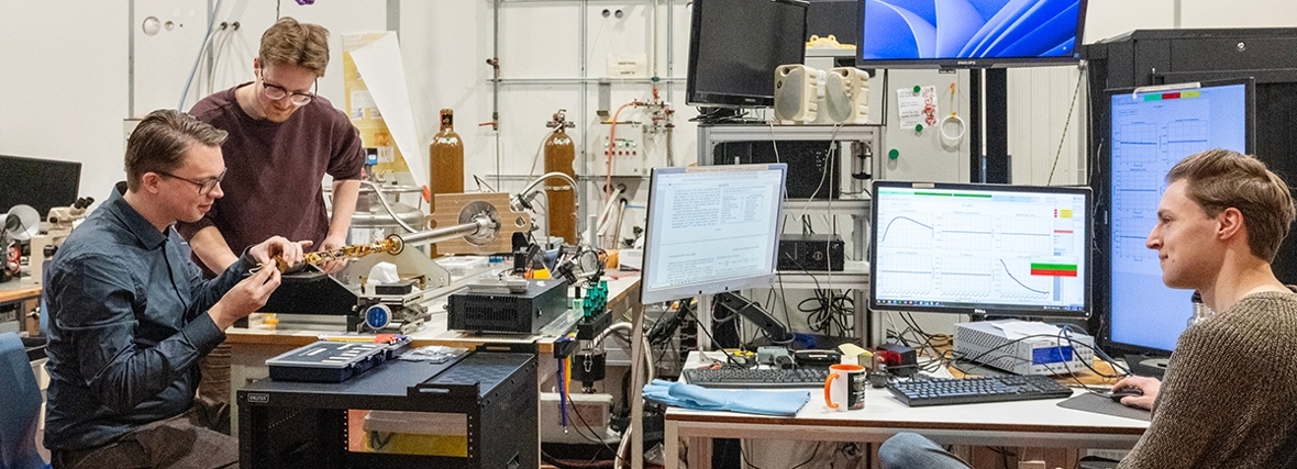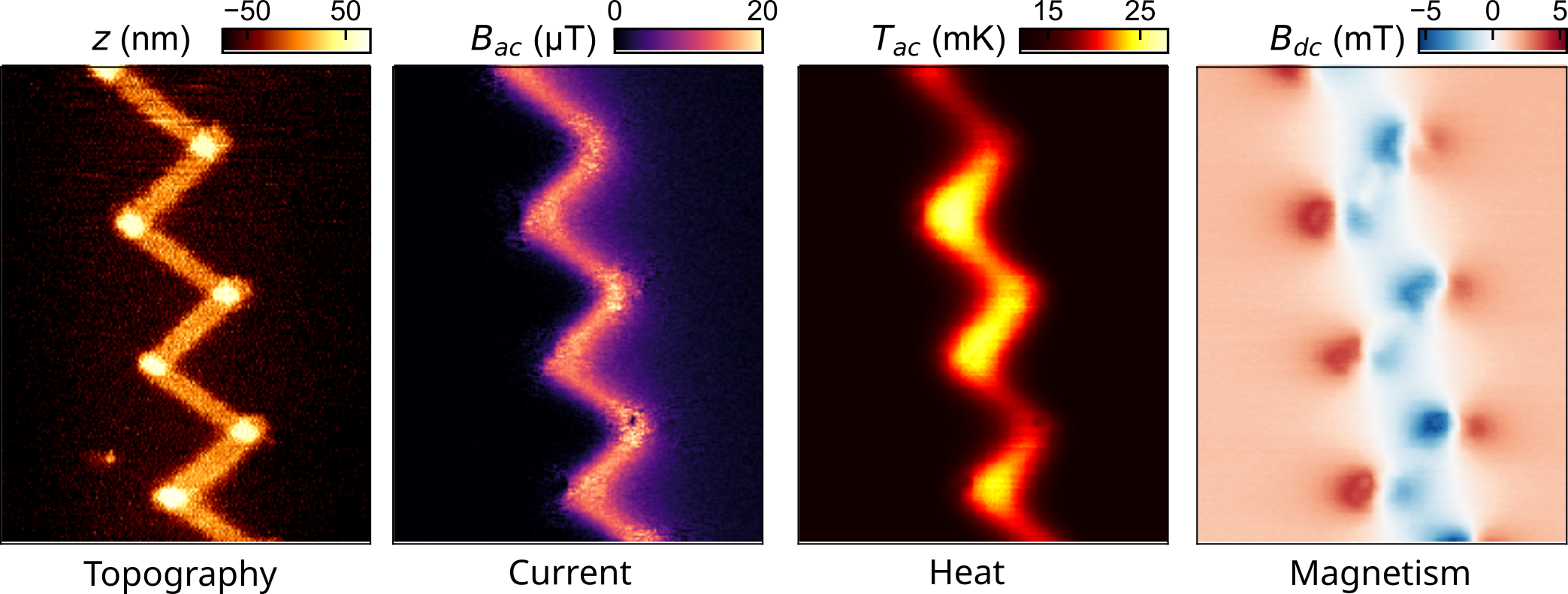 Temperature, magnetism, structure, and electrical properties. These are the material characteristics that this new microscope reveals. ‘It almost feels like having a superpower,’ says Matthijs Rog, a PhD student in Kaveh Lahabi’s research group. ‘You look at a sample and see not only its shape but also the electrical currents, heat, and magnetism within it.’