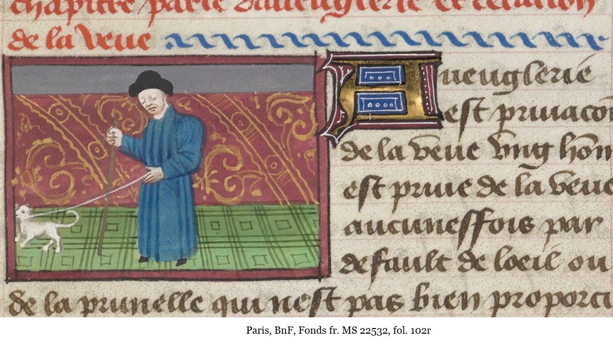 That is exactly what Milne did. ‘I didn’t expect to find more than ten artistic representations, but I actually found about thirty’, she says. ‘‘This allowed me to delve deeper into the subject matter and discover, for example, that the number of guide dogs depicted increased in the twelfth and thirteenth centuries, although this may also be due to the fact that the number of illustrated manuscripts also increased during that period.’