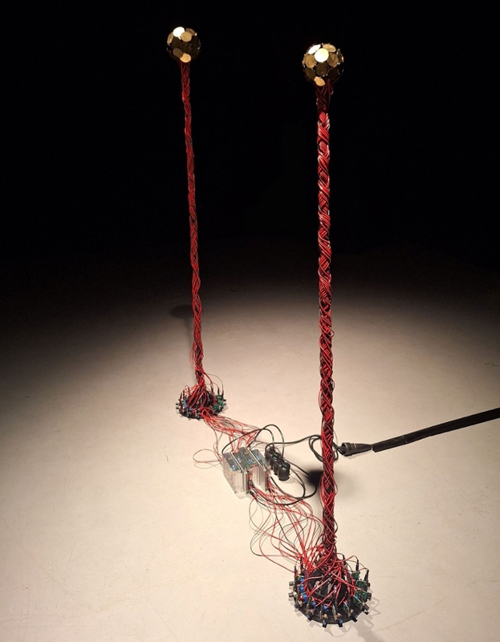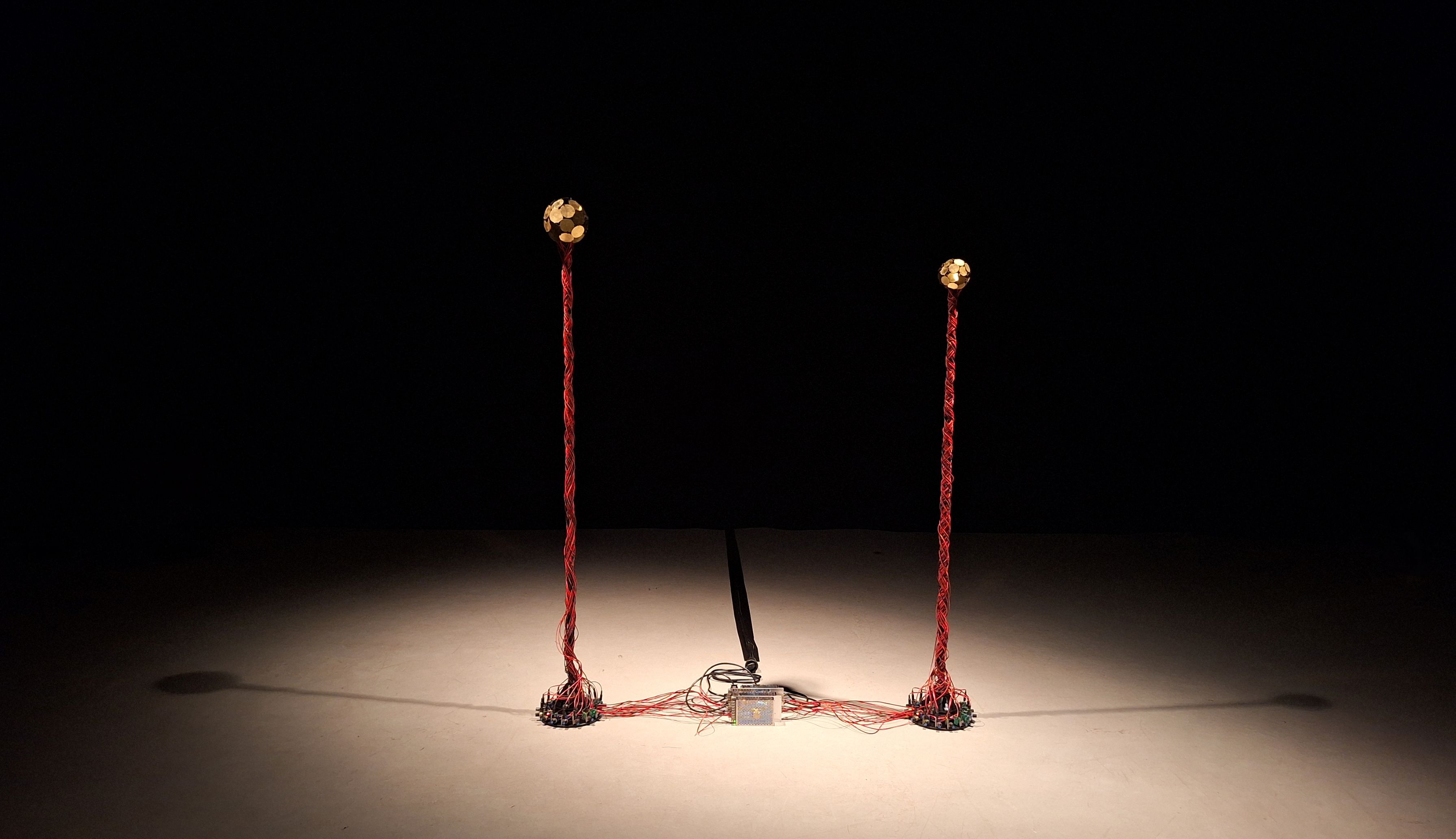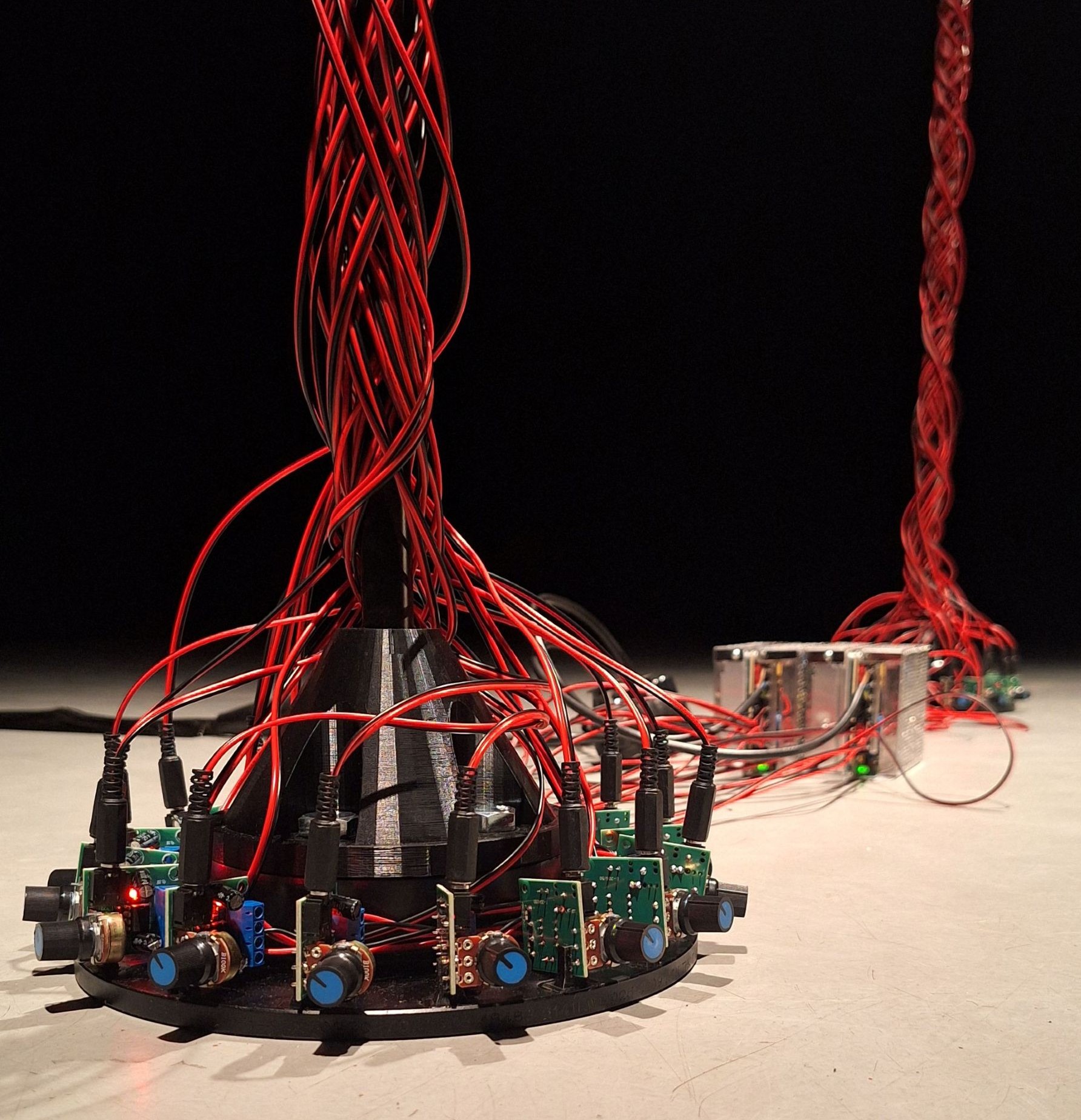 Base of the sculpture with amplifiers and cables (photo: Caeso) -