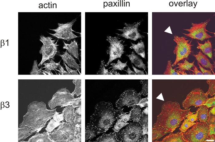Fibronectin is strongly expressed in the extracellular matrix associated with wound healing. Here, we mimicked the process of wound healing in vitro by scratching a monolayer of cells growing in a culture dish. We used epithelial cells expressing either β1 or β3-type fibronectin-binding integrins.