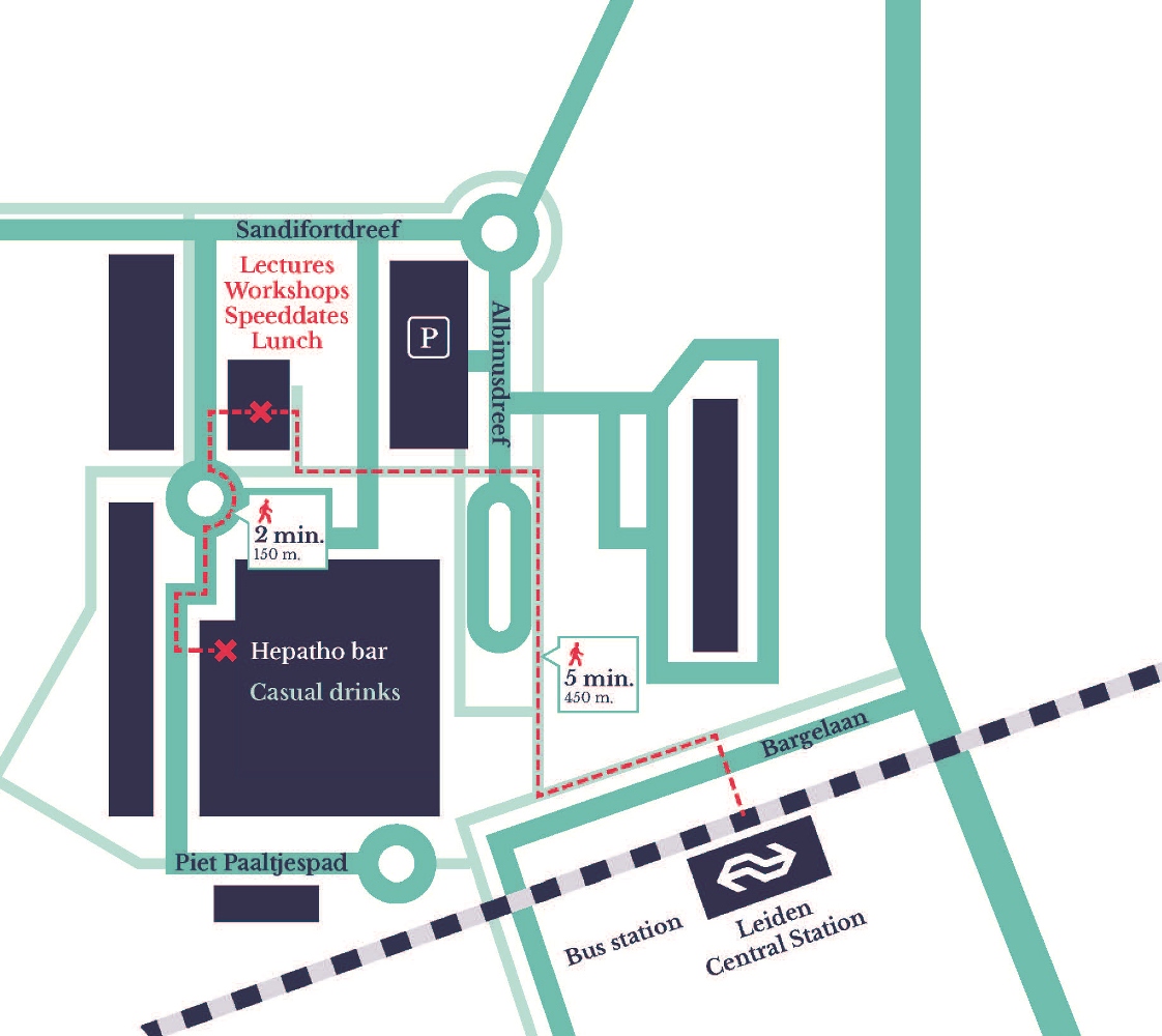 Here you can find the map of the conference location (Leids Universitair Medisch Centrum). The location is at a five minute walking distance from Leiden Central station.