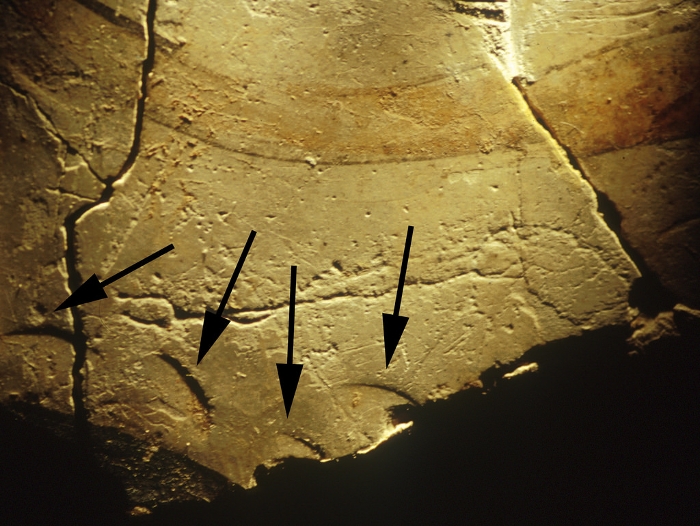Microscopic study makes it possible to detect traces of use and treatment like edge damage, striations and polish, features which vary in appearance according to the material the object comes into contact with.