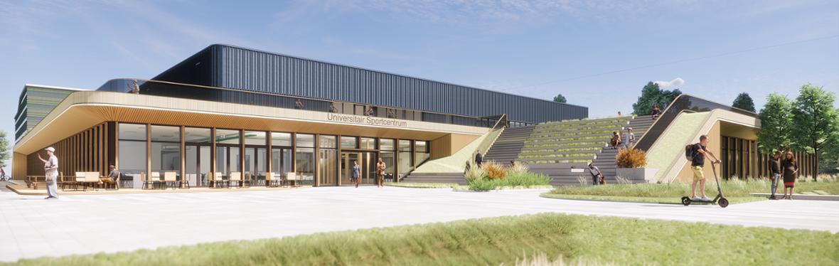 Het nieuwe sportcentrum, wat ook in gebruik zal worden genomen als tentamencentrum, komt te liggen aan het Campusplein.