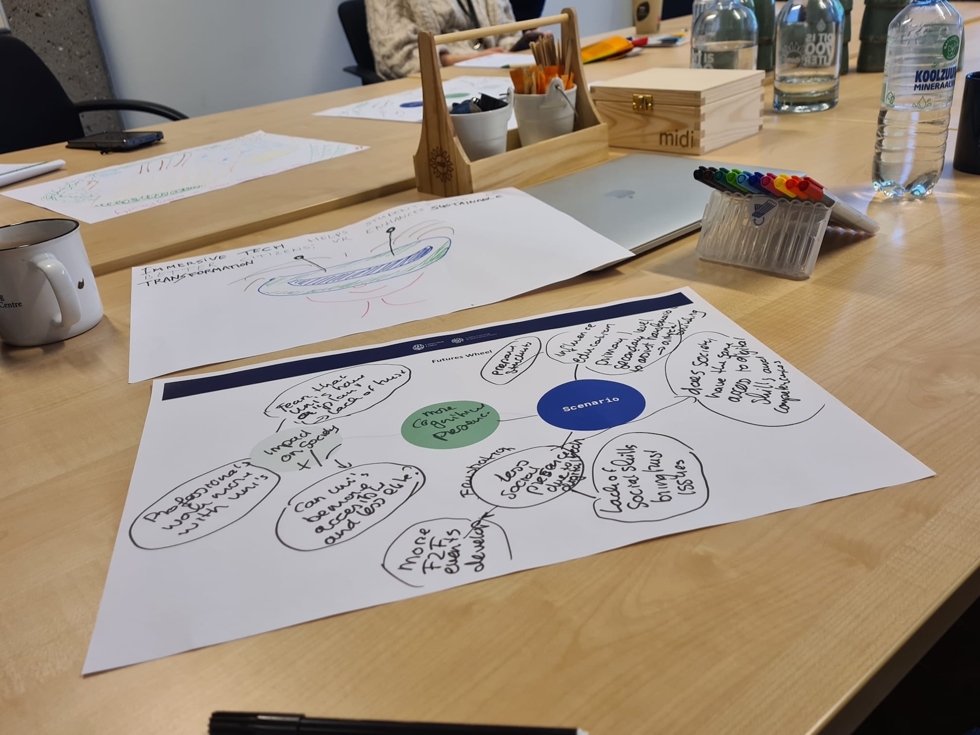- Futures wheels: breng de gevolgen van een specifieke verandering of innovatie in kaart om de bredere impact te begrijpen.