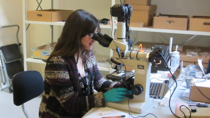 Catarina studied a collection of beads and pendants from the island of St. Croix, formerly part of the Danish Virgin Islands. With microscopes brought from Leiden University’s Laboratory for Artefact Studies, she is researching body ornamentation in the Early Ceramic Age. Ornaments in different stages of production were exchanged between the different islands over long distances. Catarina’s aim is to understand how the indigenous peoples were making beads of hard semi-precious rocks and minerals, as well as elaborately-carved pendants in animal shapes. Later on, the data for St. Croix will be compared to other centres of bead production in the Lesser Antilles and Puerto Rico. The collaboration with the team from Amsterdam will help us to understand further these networks of exchange, in which ornaments had an important role as social valuables.