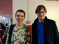 Lorenzo Oechies van het Scheldemond College in Vlissingen en Erik Mens van het Oostvaarders College in Almere hebben elkaar vandaag bij de olympiade ontmoet. Ze vonden de opgave over het Abui het lastigst. 'Ik ben over het algemeen wel goed in puzzels met klankverschuivingen', vertelt Erik, 'dus ik hoop dat daar nog een opgave over komt.' Lorenzo en Erik willen volgend jaar allebei Taalwetenschap gaan studeren in Leiden.