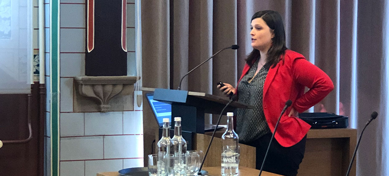 Dagvoorzitter dr. Marga Sikkema-de Jong kondigt de volgende spreker aan -