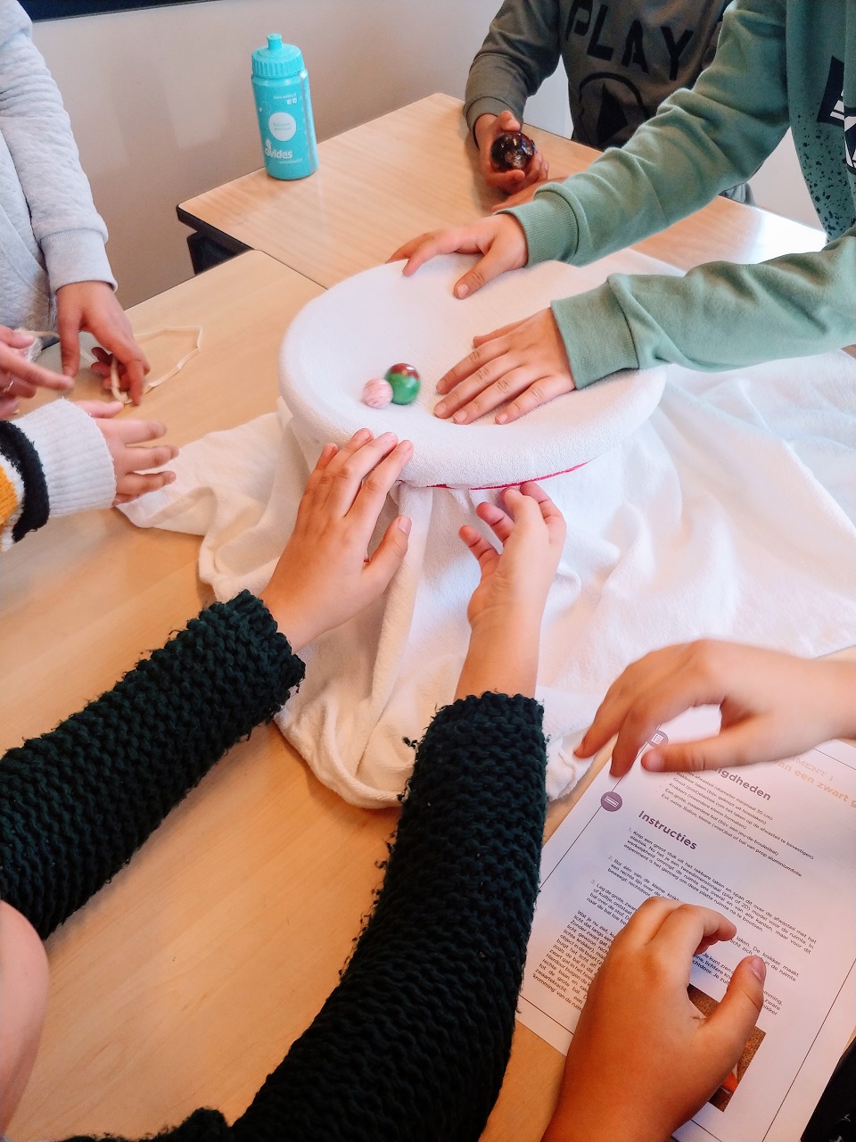 Leerlingen bootsen de aantrekkingskracht van een zwart gat na (foto: Tessa Vossen)